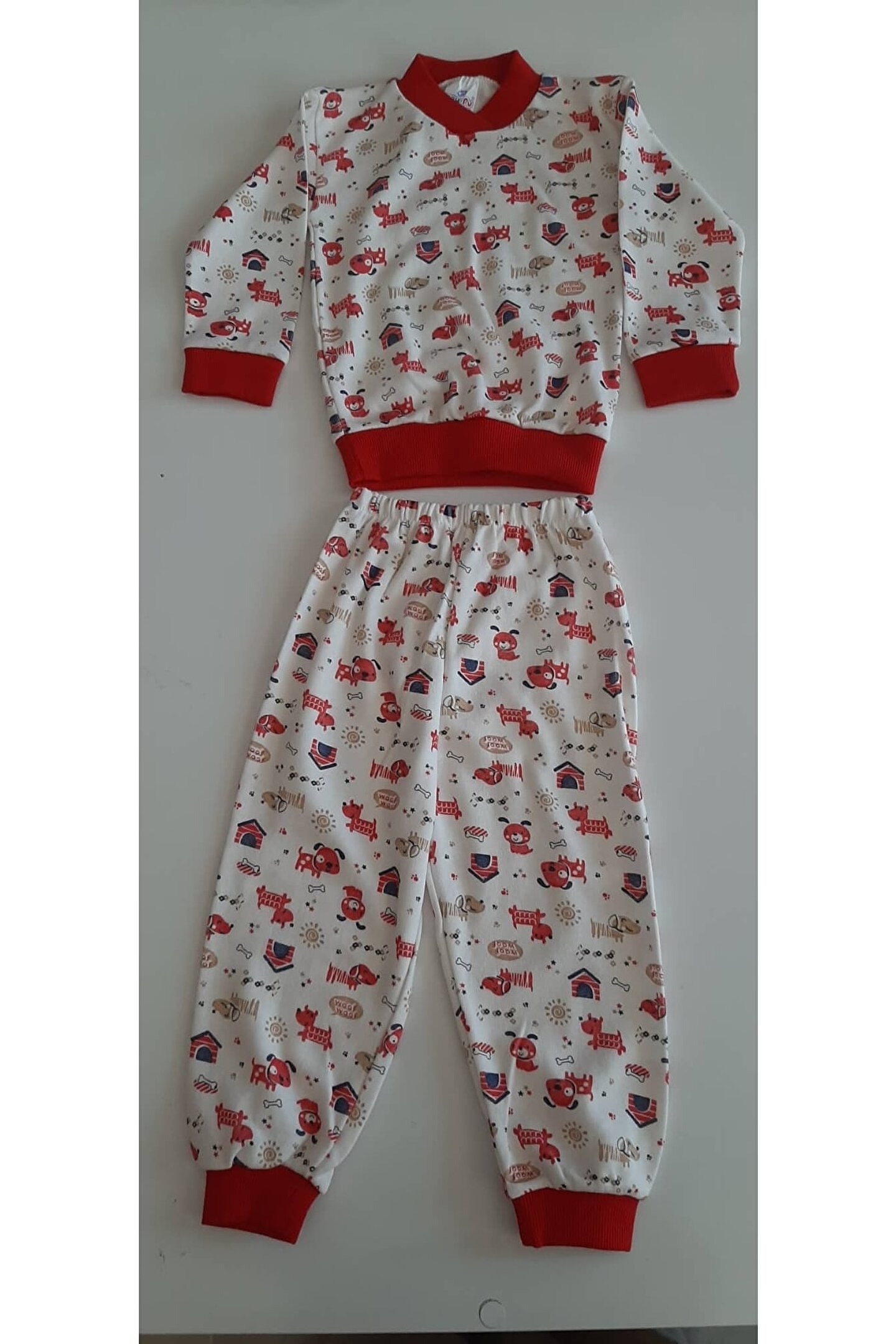 Çocuklar için özel olarak tasarlanmış, rahat ve şık bir görünüm sunan beyaz kırmızı baskılı pijama takımı; Canlı ve eğlenceli baskılarıyla çocukların ilgisini çeken, renkli ve dinamik bir stil oluşturur; Lastikli tasarımı sayesinde pijamalar kolayca giyilip çıkarılabilir ve mükemmel uyum sağlar;