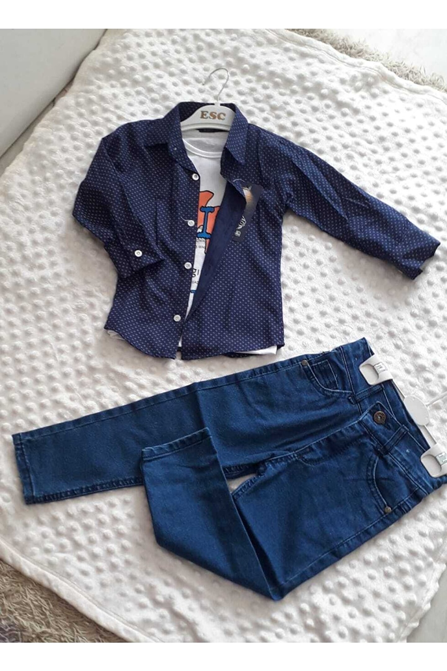 - Klasik ve şık bir görünüm için lacivert gömlek ve beyaz t-shirt'li takım; - Rahat kesimi ile günlük kullanım için ideal, regular boy pantolon; - Her türlü ortamda rahatlıkla tercih edilebilecek kombinasyon; - Lacivert gömlek, beyaz t-shirt ve pantolonun uyumlu renk paleti ile şıklığı yakalayın;