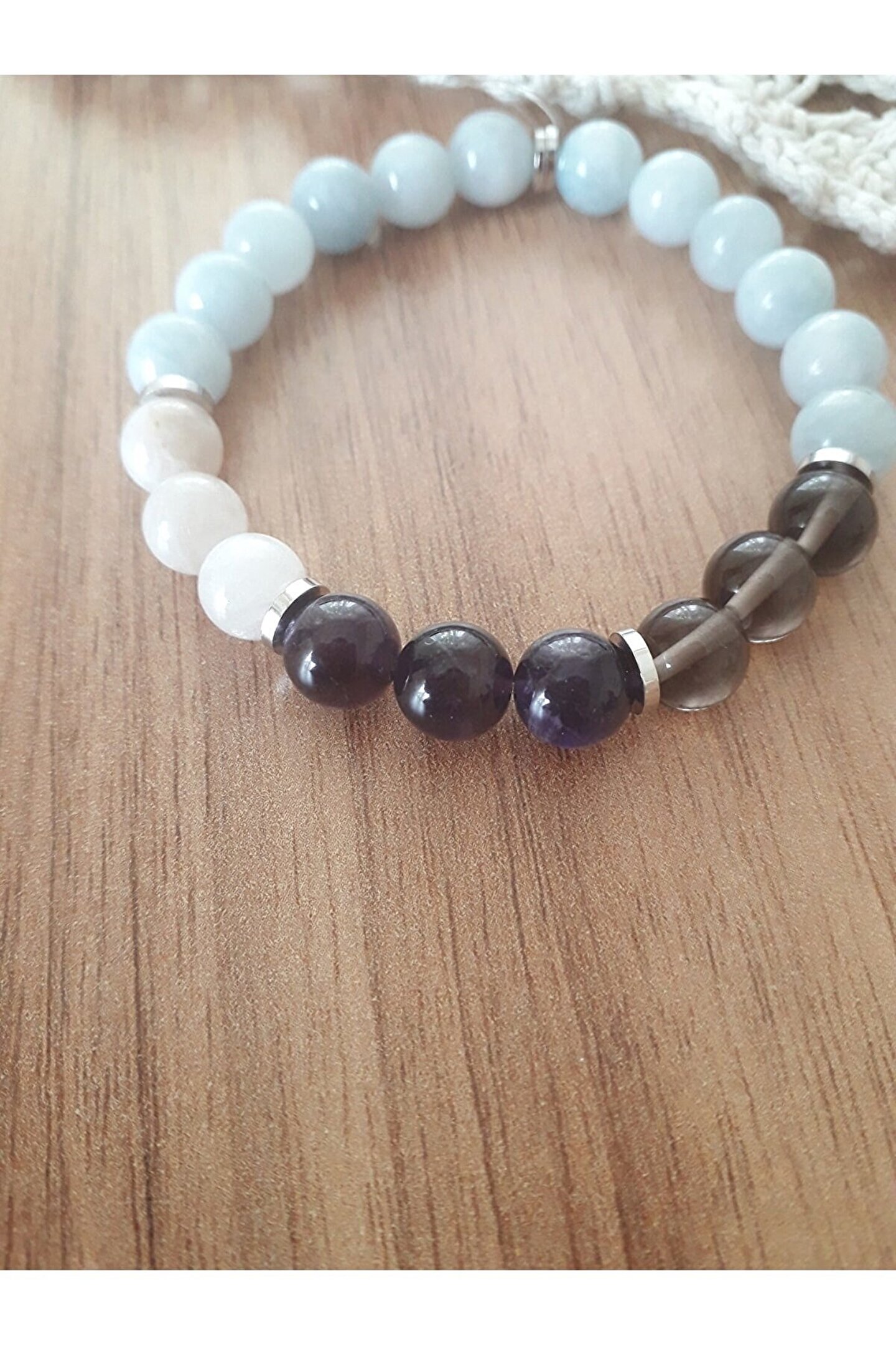 Mavera Doğaltaş Akuamarin, Dumanli Kuvars, Ay taşı ve Ametist Doğal Taş Bileklik