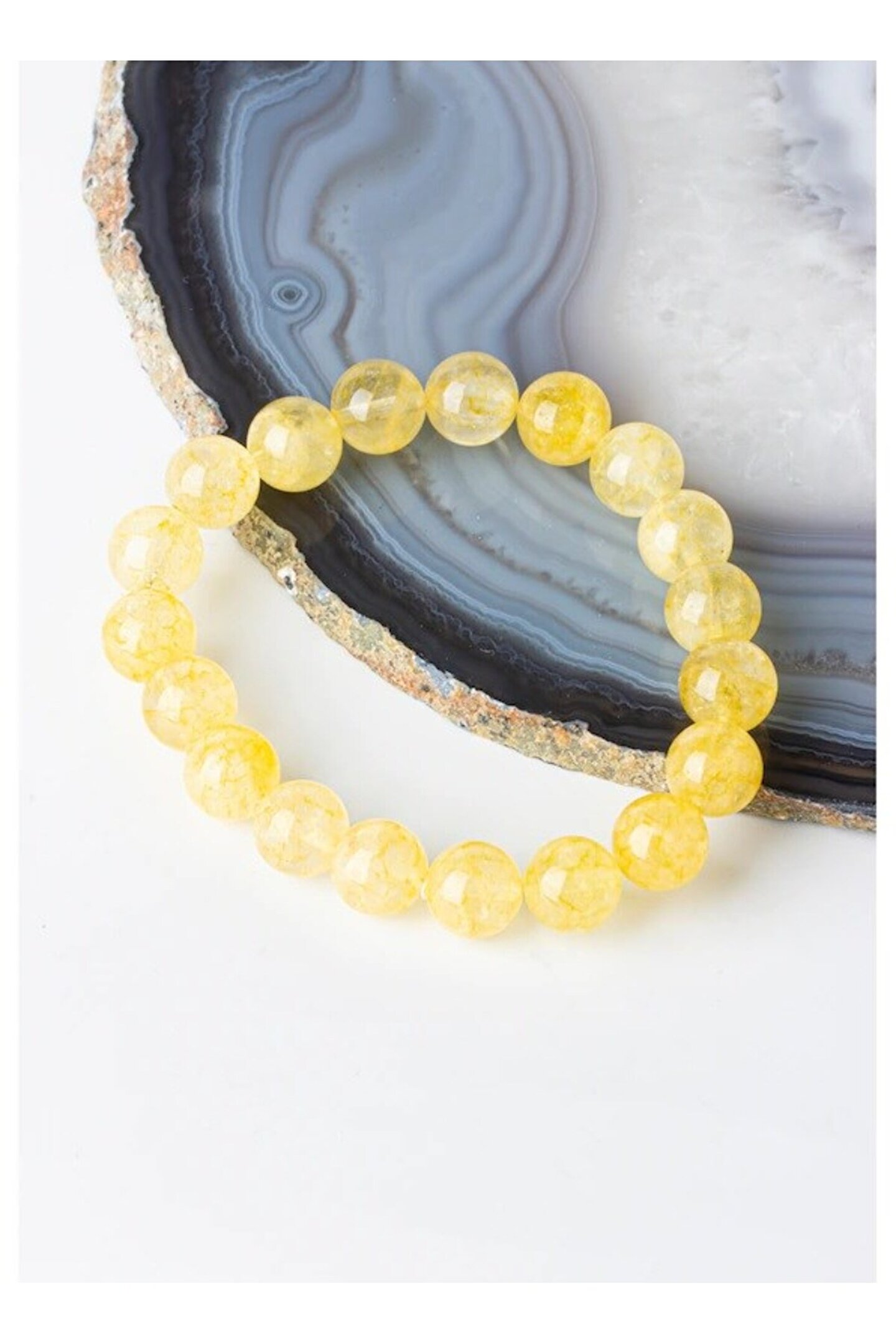 Dönüşümlü Sitrin Doğal Taş Bileklik 10 mm Küre Kesim