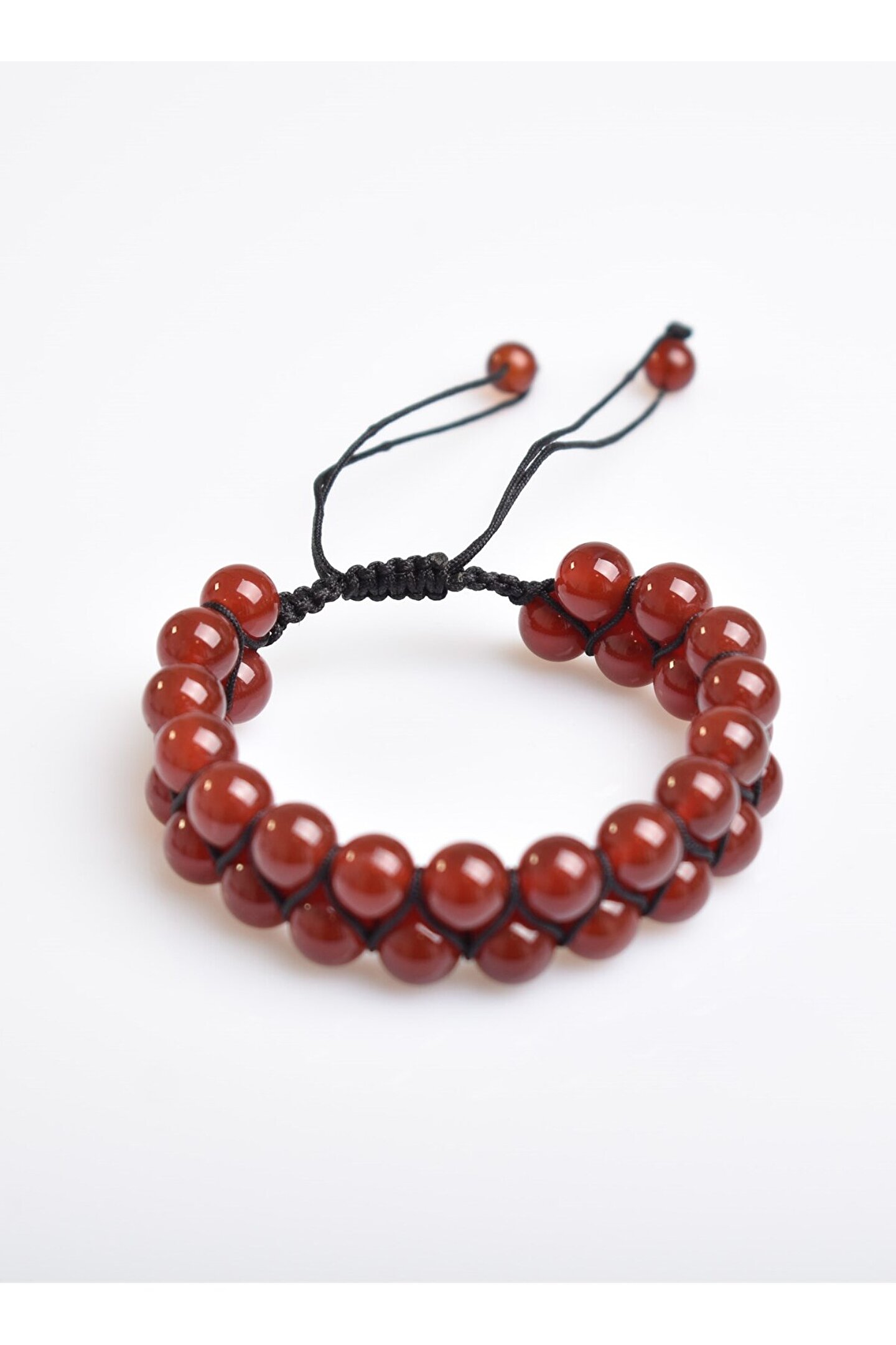 Kırmızı Akik 8mm Çift Sıra Makrome Doğal Taş Bileklik