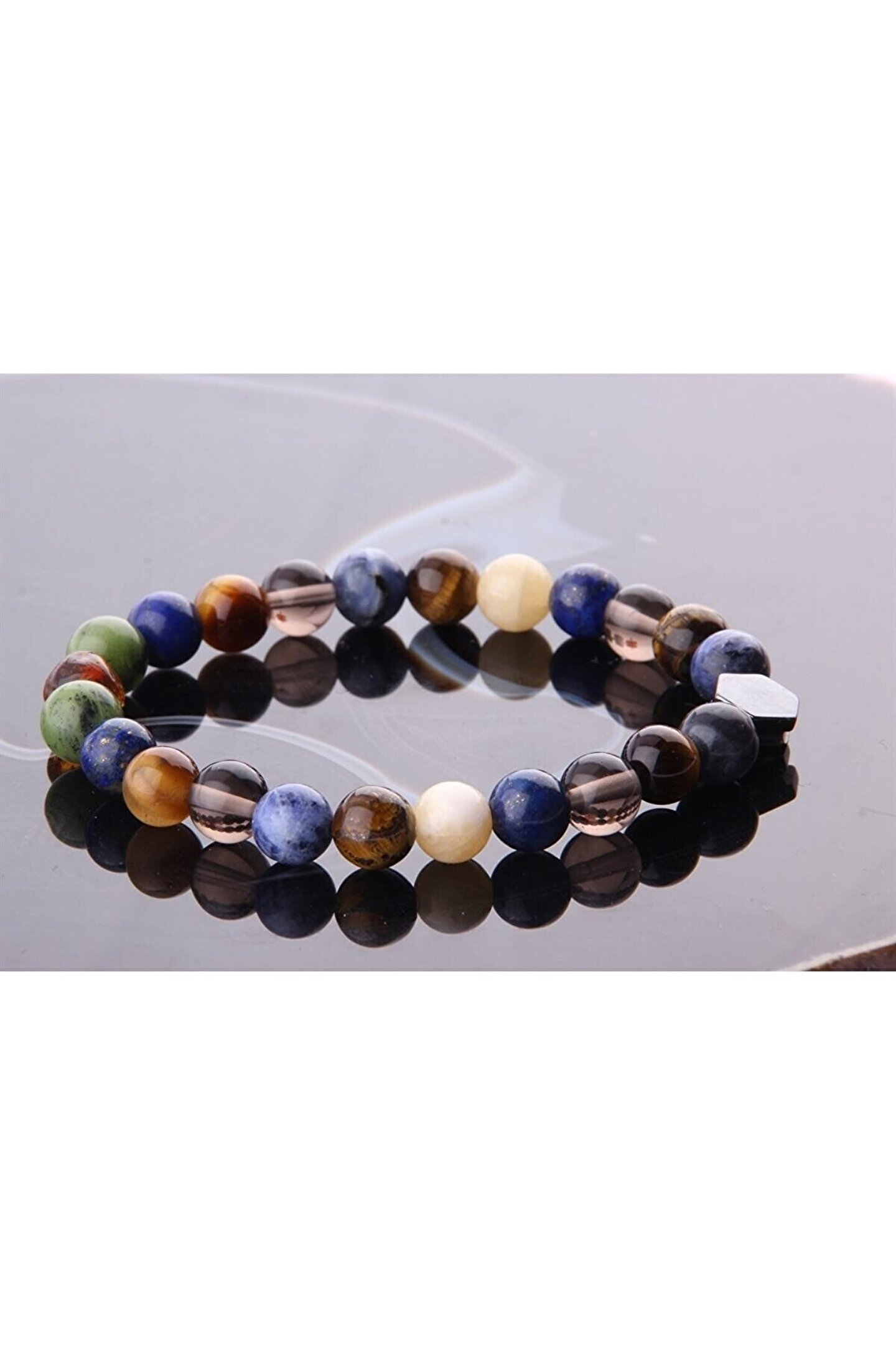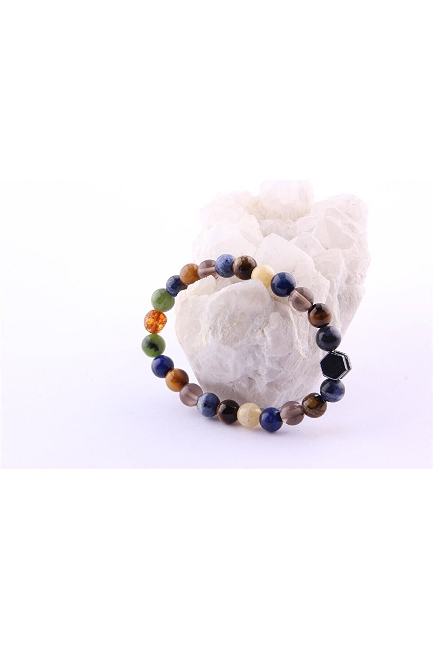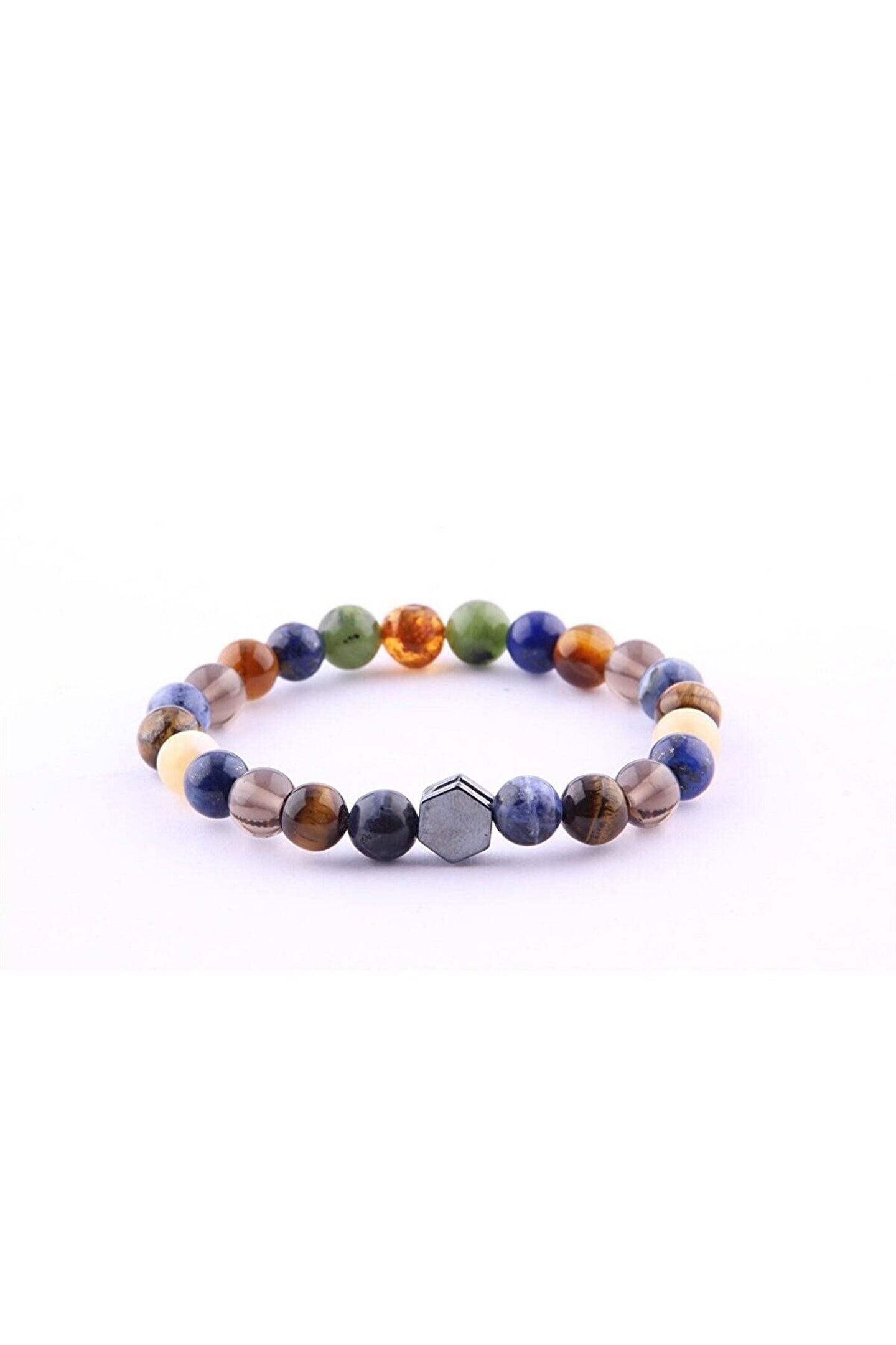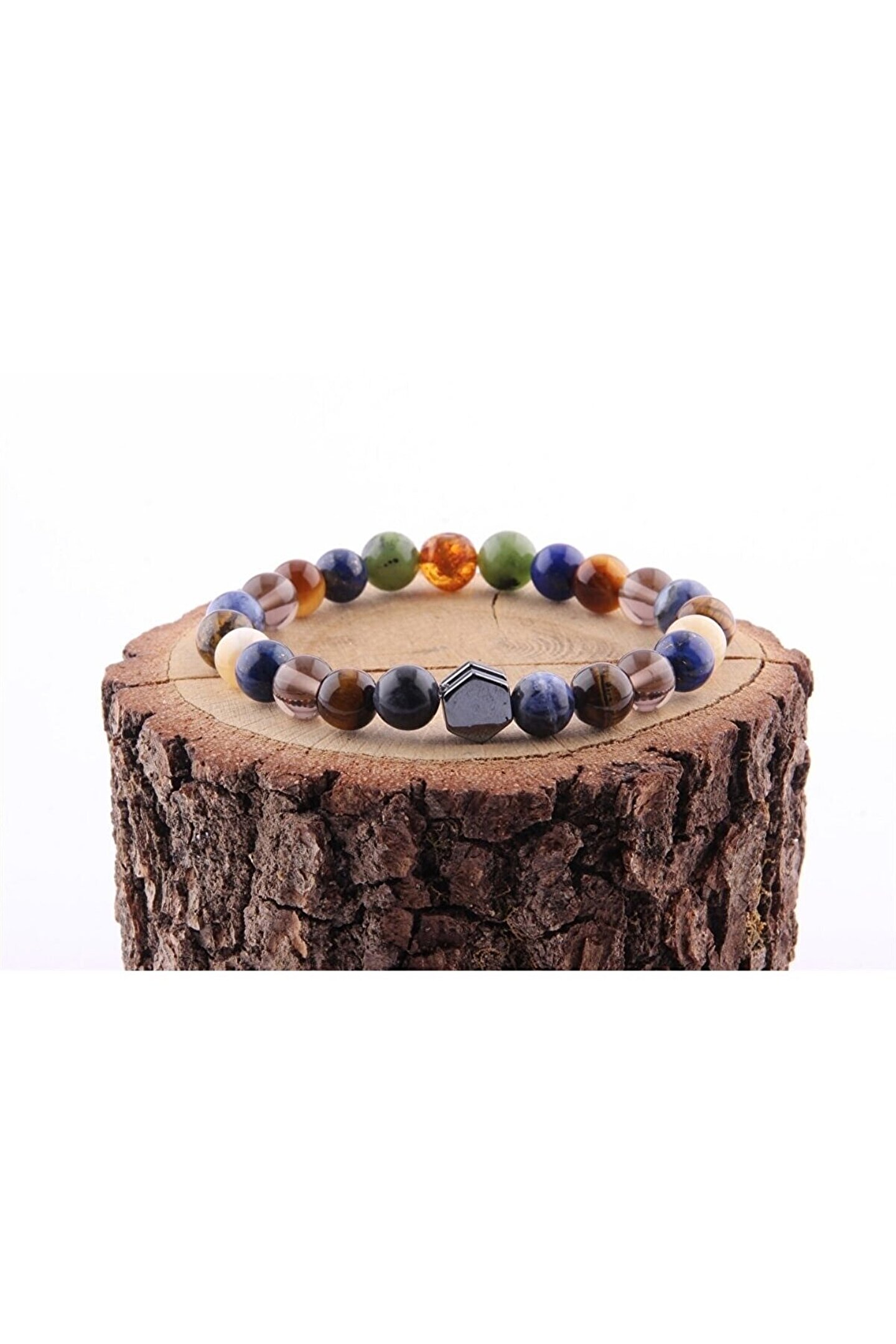 Doğal taş kullanımı sayesinde her bileklik benzersiz ve otantik bir görünüm sunar; Kehribar yeşim, lapis dumanlı kuvars ve kaplan gözü sodalit gibi farklı doğal taşların birleşimiyle zenginleştirilmiş tasarım, şıklığı ve doğallığı bir arada sunar; 8 mm boyutundaki bileklik, rahat bir kullanım sağlarken bileğinizin doğal hatlarını zarifçe sarar; Bu bileklik, hem günlük kullanım hem de özel günlerde tercih edilebilecek ideal bir aksesuar seçeneğidir;