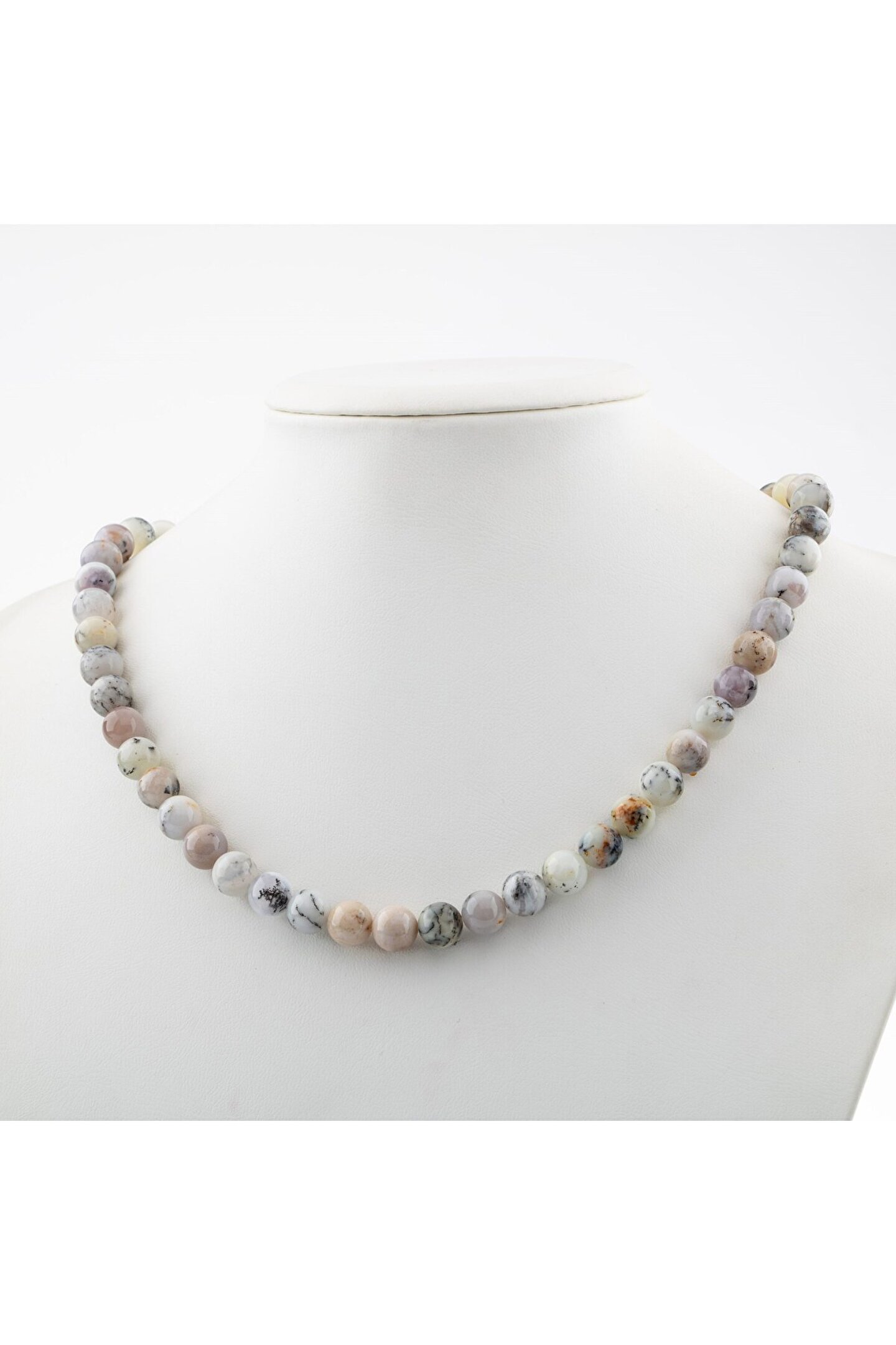 Doğal taş kullanımı sayesinde her kolye benzersiz ve otantik bir görünüm sunar; Süt opal taşı, kolyenin zarif ve göz alıcı bir parlaklık kazanmasını sağlar; 8 mm boyutundaki taşlar, hem şıklığı hem de rahatlığı bir arada sunarak günlük kullanım için idealdir; Doğal taş materyali ile hem dayanıklılık hem de estetik bir dokunuş elde edilir;
