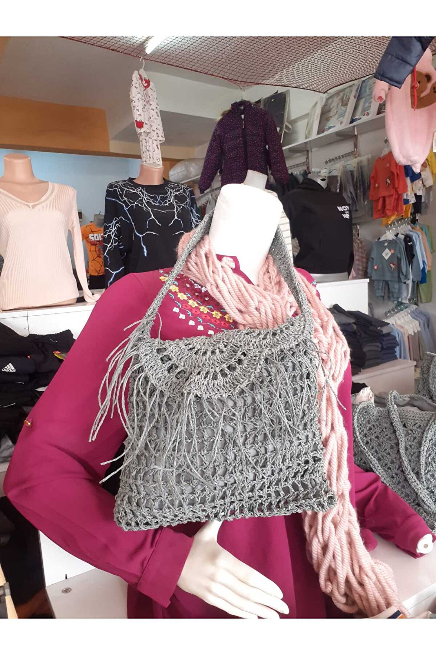 Zamansız gri tonuyla her ortama uyum sağlayacak düz deseniyle, gri püsküllü el örgü çanta, şık ve sade tasarımıyla dikkat çekiyor.; El örgüsü tekniğiyle üretilen bu çanta, hem dayanıklılık hem de estetik açıdan üstün bir performans sergiliyor.; Püskül detayları ile modern ve trend bir görünüm kazanan bu çanta, günlük kullanımda rahatlıkla tercih edilebilecek bir aksesuar olarak öne çıkıyor.; Minimalist tasarımıyla dikkat çeken bu el örgüsü çanta, hem günlük hem de özel günlerde stilinizi tamamlayacak zarif bir aksesuar olarak gardrobunuzun vazgeçilmezi olacak.;