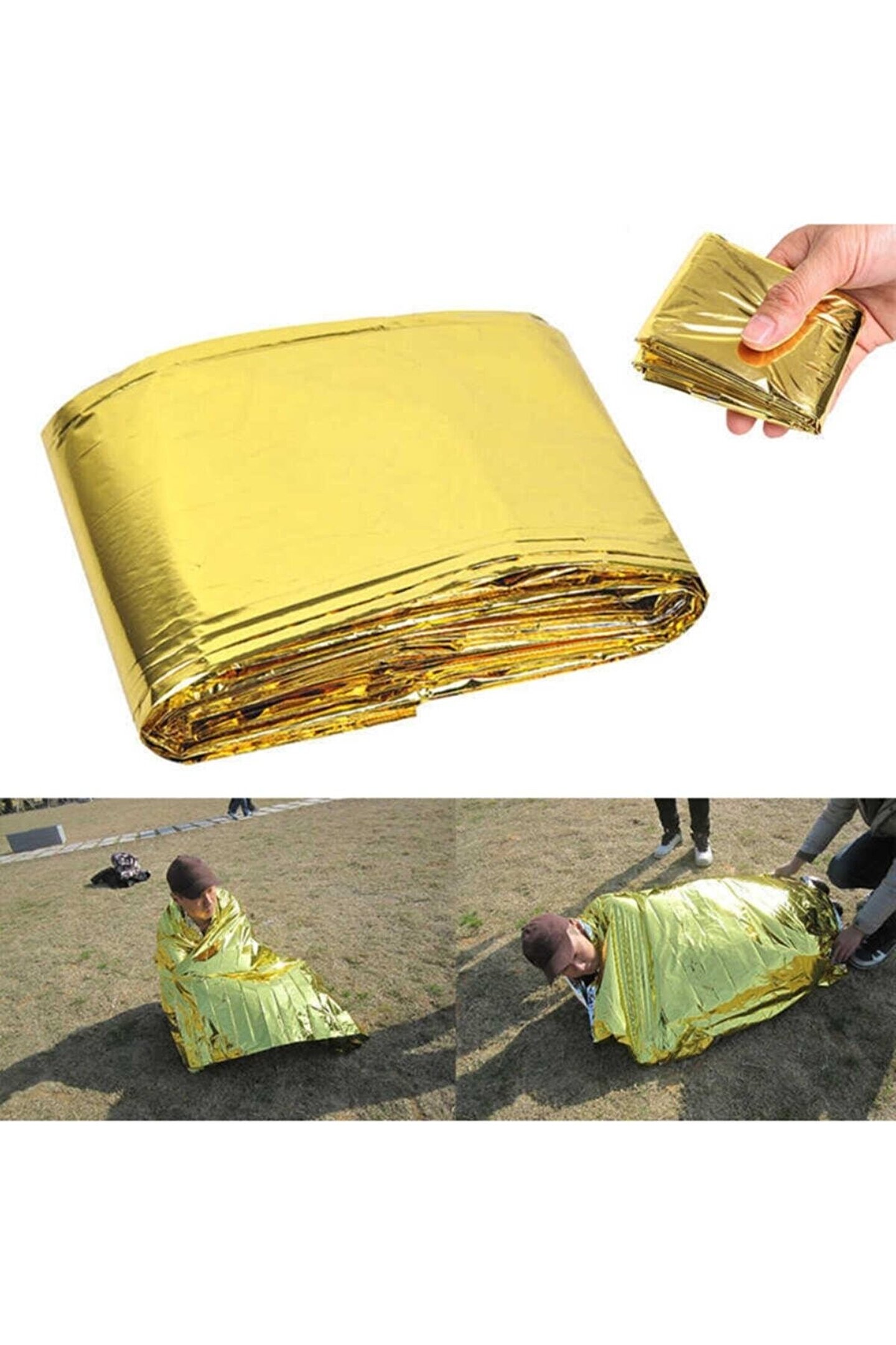 Acil Durum Ilk Yardım Battaniyesi Deprem Survival Termal Battaniye ; 160cm x 210 cm SARI-GÜMÜŞ RENK ; Termal battaniye nedir, ne için kullanılır? ; Acil durum ve afetlerde sıkça görülen, folyoyu andıran termal battaniyenin ilk yardım çantalarının içerisinde bulunması uzmanlar tarafından öneriliyor. ; Yaklaşık 70 yıldır kullanımda olan termal battaniye vücut ısısının korunmasını sağlıyor. Mylar adı verilen bir maddeden üretilen termal battaniye, hacmi düşük ve ısıyı koruma özelliği ile dikkat çekiyor. ; Son dönemde özellikle izmir depremindeki zarar gören mağdurlarda görülen battaniye merak konusu oldu. ; Termal battaniye nedir? ; 1950'lerde dupont tarafından icat edilmiş, daha sonra nasa tarafından uzay görevlerinde kullanılmaya termal battaniye, içerdiği metal nedeni ile parlak bir görünüme sahiptir. Termal battaniye, sarılı olduğu kişiyi ısıtma görevi değil mevcut ısıyı muhafaza ederek yalıtım sağlama görevini gerçekleştiriyor. Vücuda sarıldığı andan itibaren dışarıdaki havanın içeri geçmesini önleyen battaniye aynı zamanda terleme etkisini de ortadan kaldırarak buharlaşmayla oluşabilecek ısı kayıplarını da en alt düzeye indirir. ; Termal battaniye iki yönlüdür ; Soğuk ve sıcağın yanı sıra su ve rüzgarı da geçirmeyen termal battaniye iki farklı yüzeyden oluşuyor. ; Bir yönü güneş koruması sayesinde serin tutmayı başarırken, diğer yönü ise ısıyı hapsederek vücudun sıcak kalmasını sağlar, böylece hipotermiyi engeller. ;