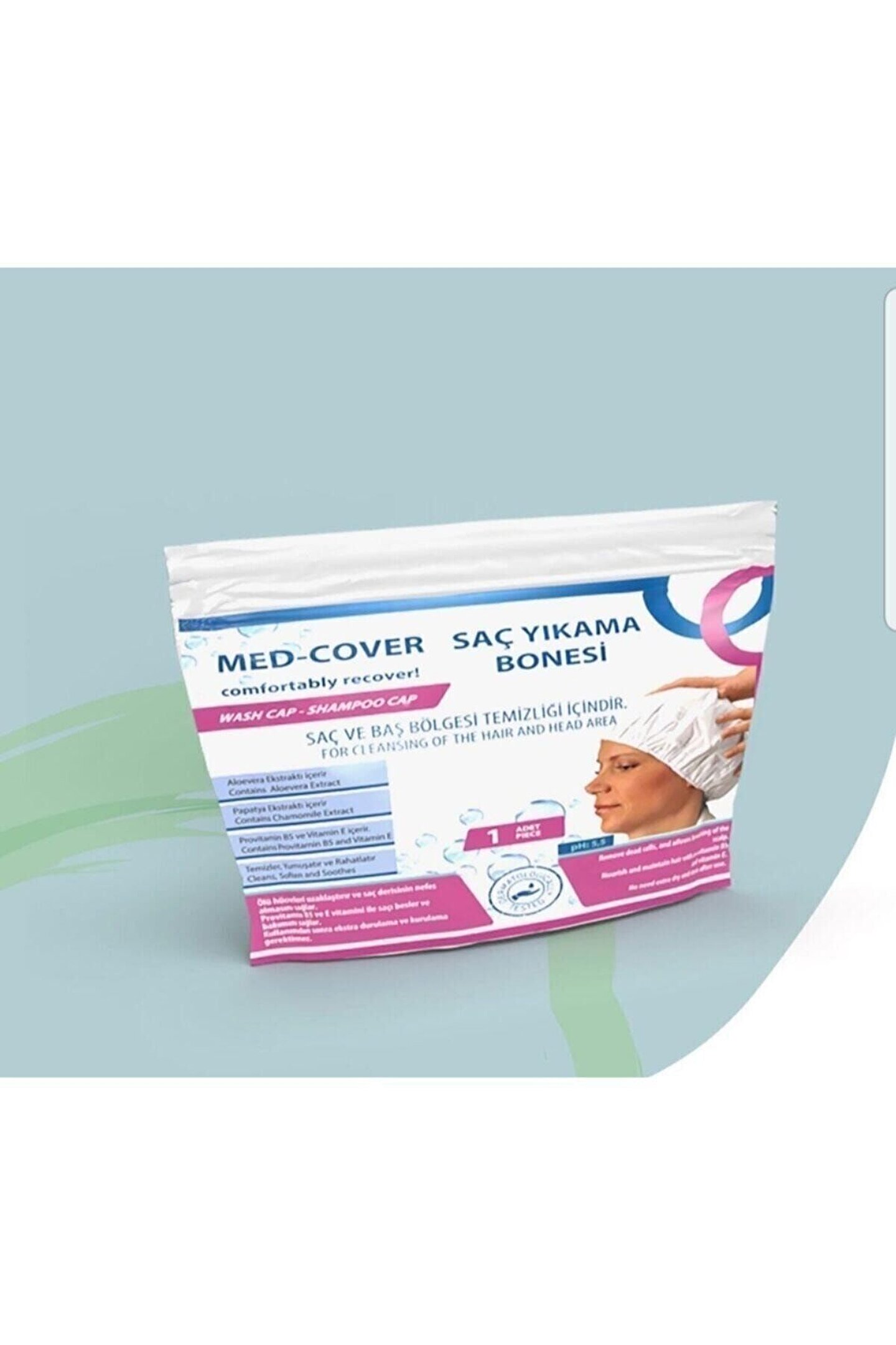 MED-COVER Saç Yıkama Bonesi ölü hücreleri saçtan uzaklaştırmak, kafa derisini ve saçları rahatlatmak ve baş ve çevresini temizlemek için kullanılır.; Zengin içeriği ile yumuşaklık sağlar ve saçın daha parlak görünmesini sağlar.; Allantoin ile kepeğin ve ölü hücrelerin saçtan uzaklaştırılmasını sağlar.; Provitamin B5 ve gliserin ile saçı nemlendirir ve parlatır.; Kafa deris; ini ve saçı papatya ekstratı ve aloevera ile rahatlatır.; EEG jelini, kanı, iyodu ve daha fazlasını kafadan efektif bir şekilde uzaklaştırır.;