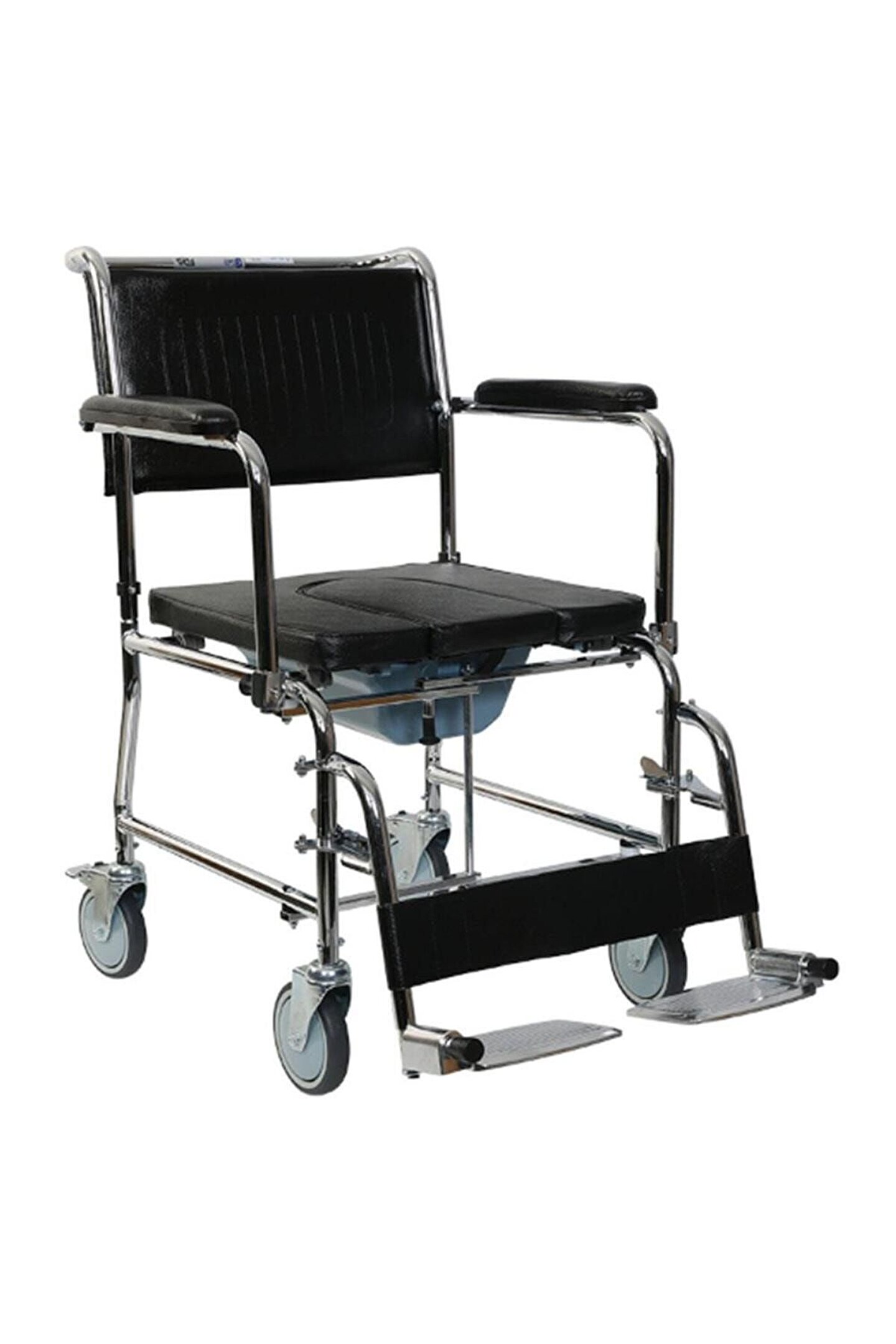 DOLGU ÖN VE ARKA TEKERLİKLİ TUVALET SANDALYESİ