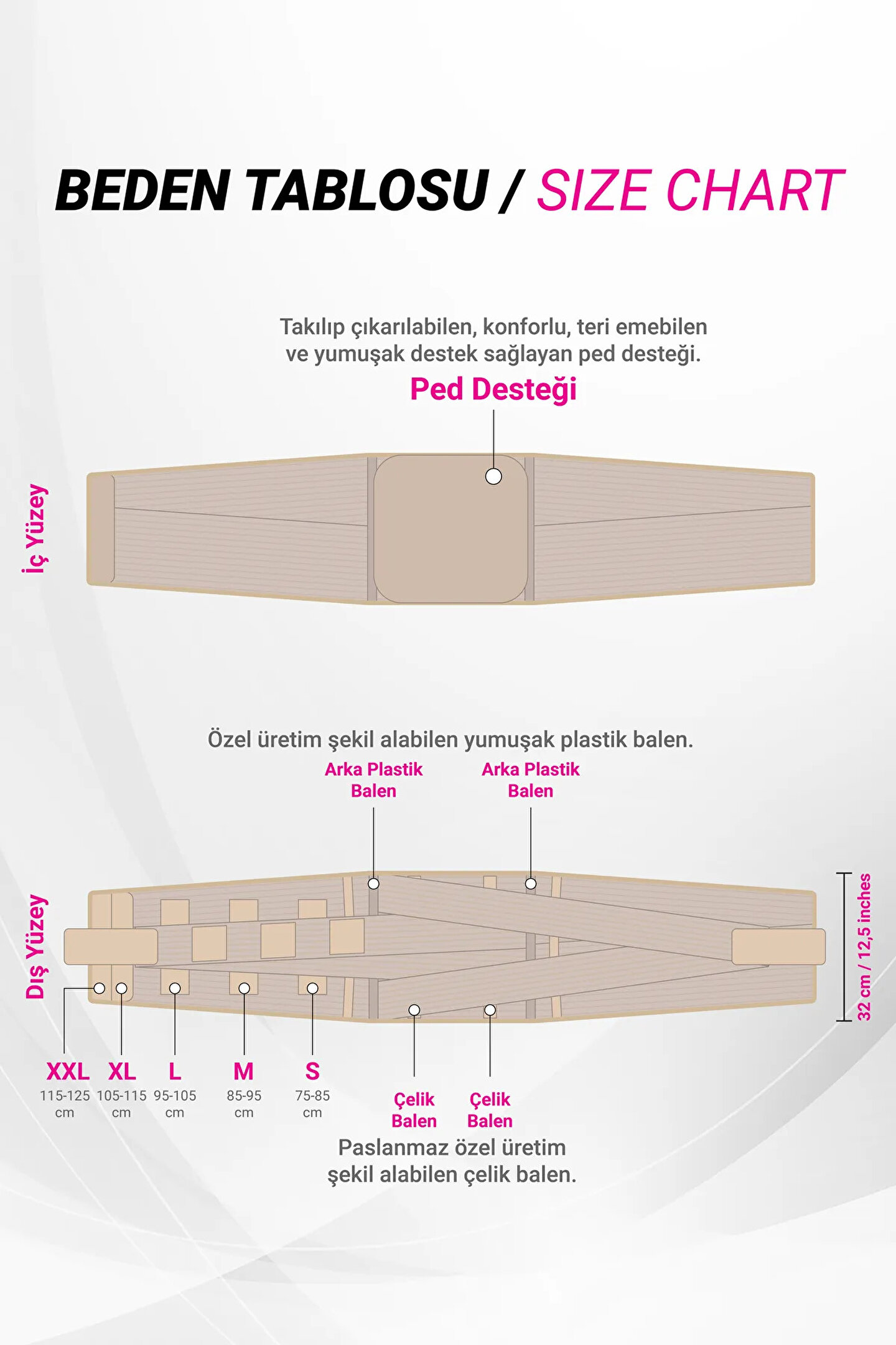 MEDİKALCIBAŞI Çelik Balenli Lumbosakral Bel Fıtığı Korsesi Bel Korsesi Bedensiz