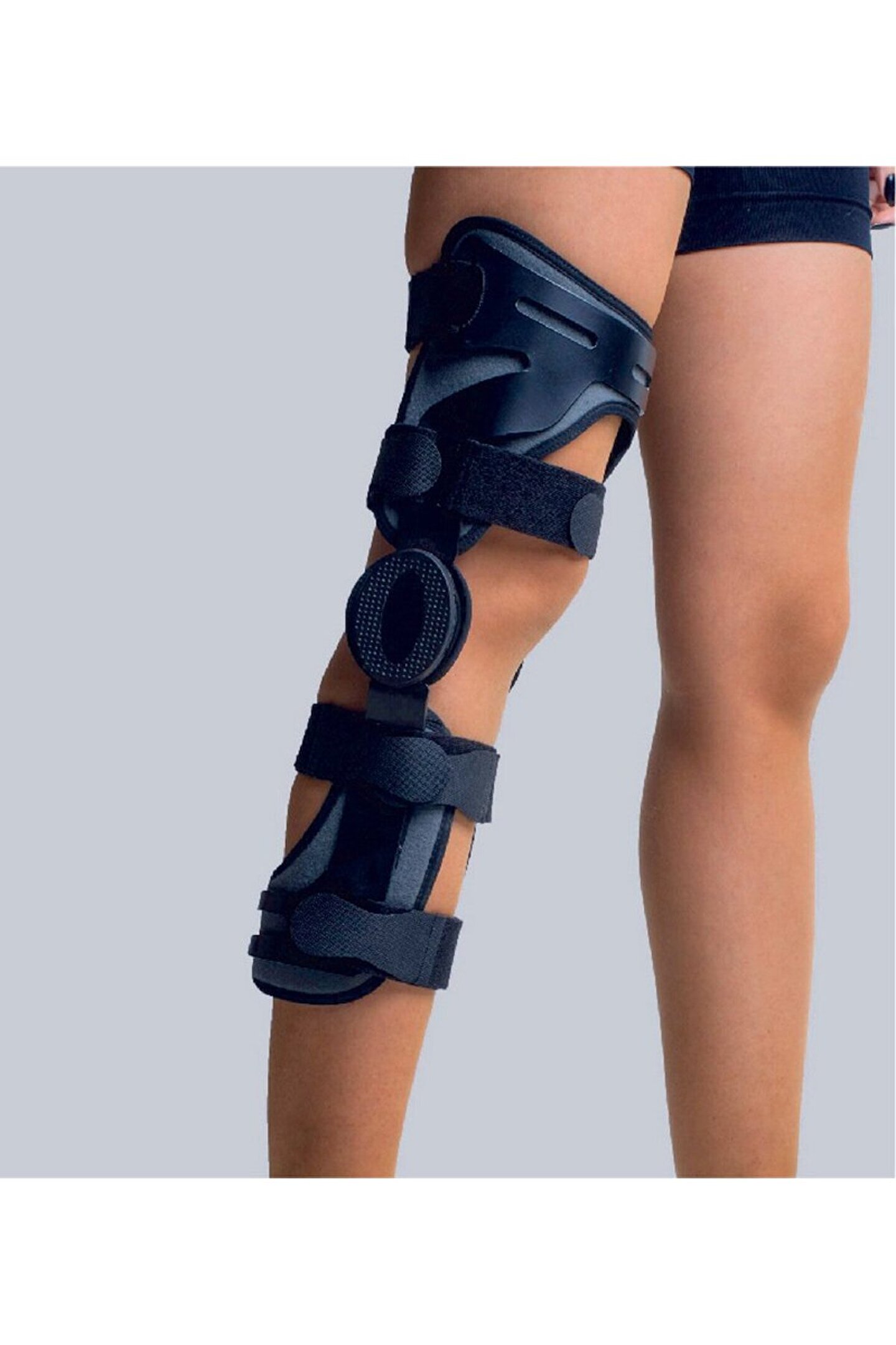 Açıklama Anatomik diz şekline göre tasarlanmış hafif alüminyum malzemeden üretilmiş, fleksiyon ve ekstansiyon limitasyonu sağlayan derece ayarlı fonksiyonel rijit breystir. Fleksiyon(0°, 15°, 30°, 60°, 90°, 120°) ve ekstansiyon (0°, 15°, 30°) derece ayarı yapılabilir. 4 nokta prensibiyle en elverişli stabilizasyonu sağlar. Öne ve arkaya tibial yer değiştirmeyi önler, dizin hiperekstansiyonunu engeller. ÜRÜN BEDEN ÖZELLİKLERİ S - Small 39-44 cm M - Medium 44-49 cm L - Large 49-55 cm XL- Extra Large 55-62 cm XXL - Extra Extra Large 62-70 cm">