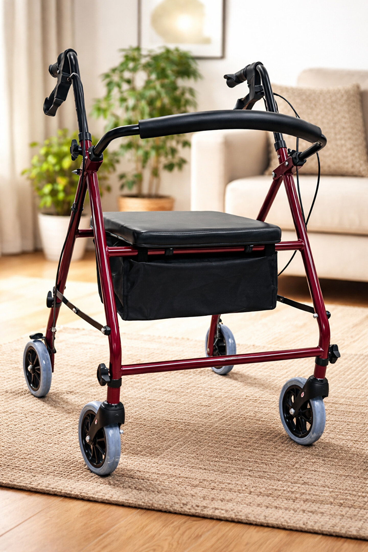 MEDİKALÖZTÜRK Pambukcuk Tekerlekli Rolatör Yürüteç Hasta Yaşlı Oturaklı 4 Tekerli 110 kg Taşıma Kapasiteli