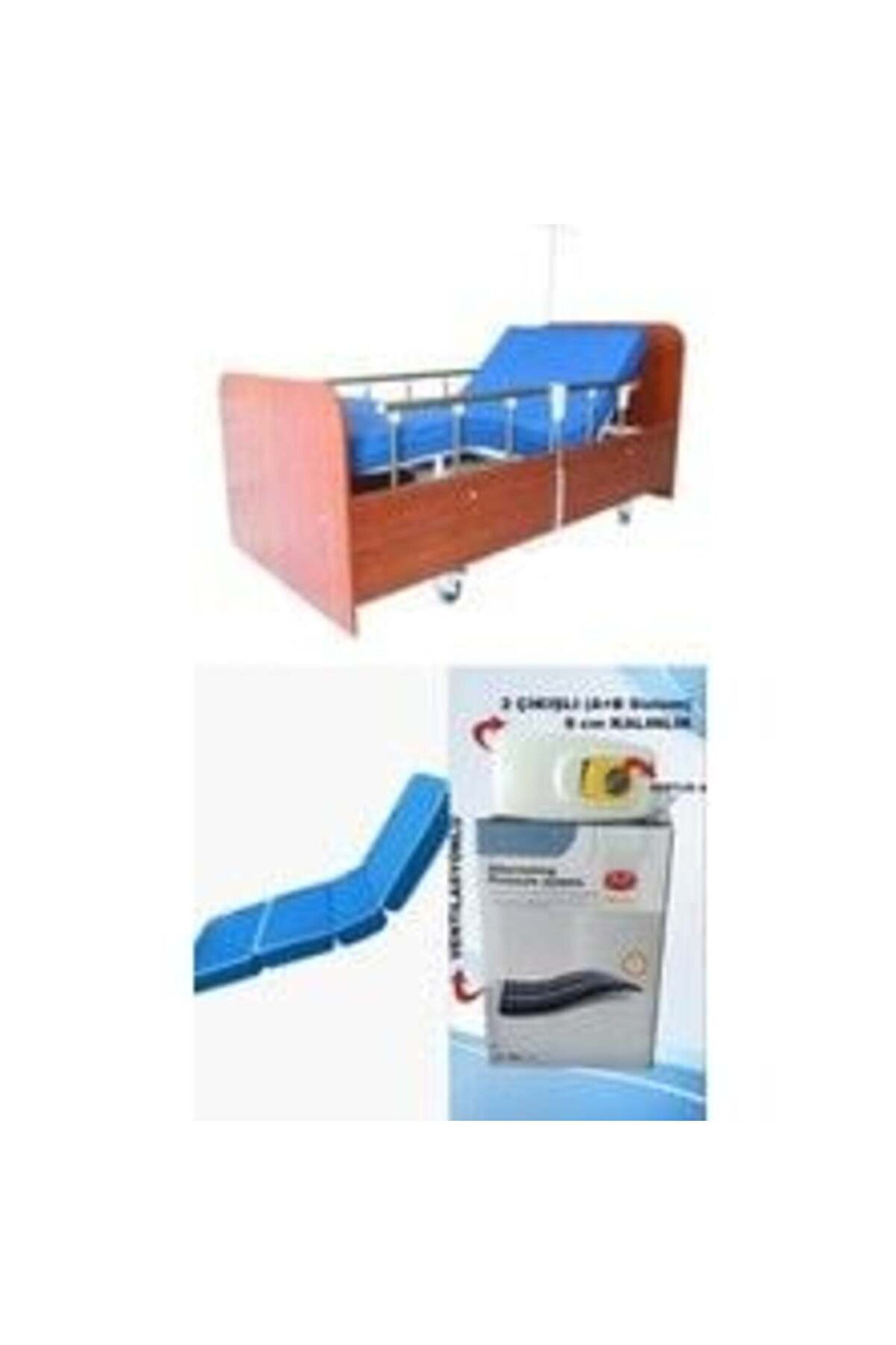 2 Motorlu Ahşap Hasta Karyolası + 4 Parçalı Yatak+ A+B Sistemli 8 Cm Boru Tipi Havalı Yatak Takım