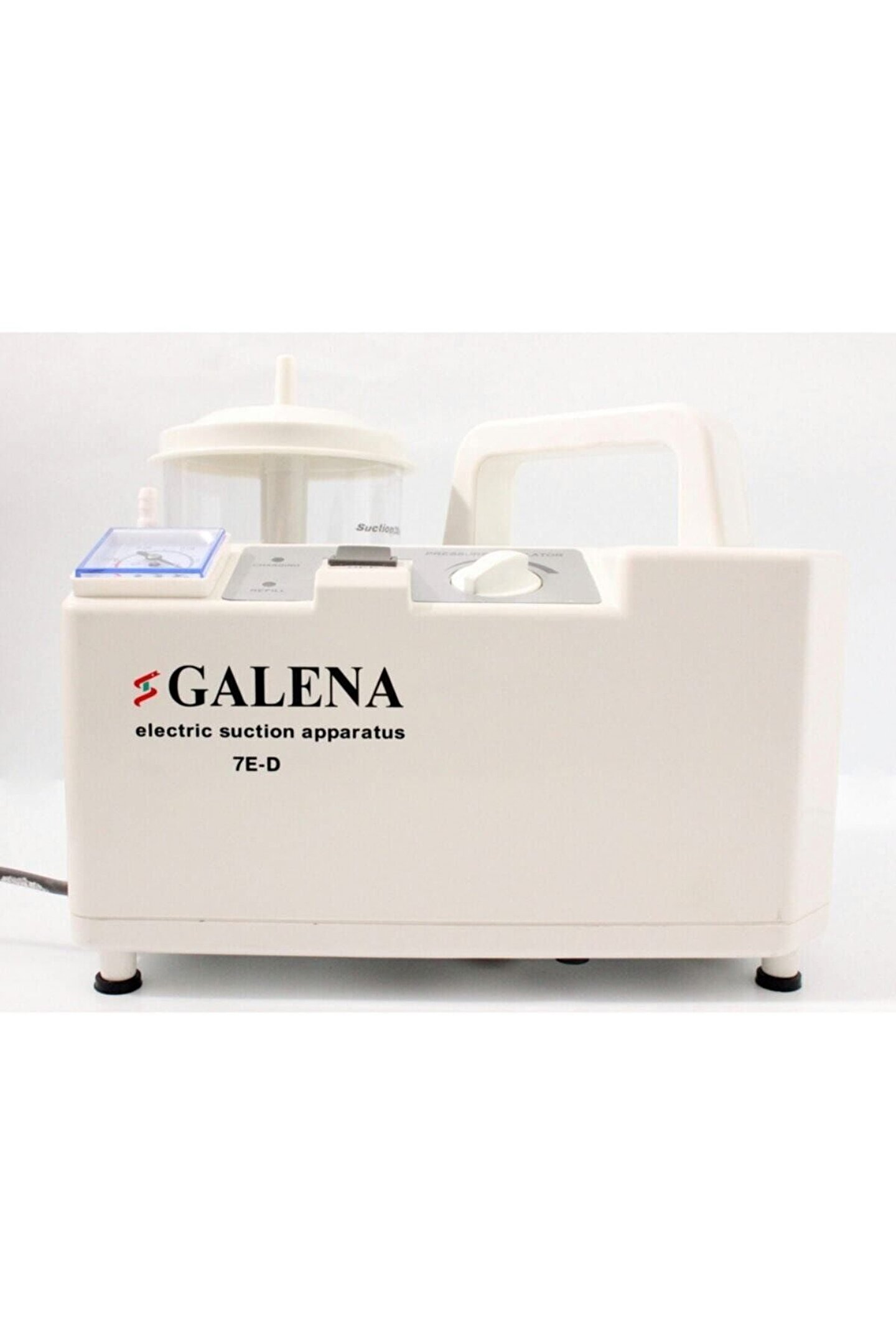 ELEKTRİKLİ PORTATİF ASPİRASYON CİHAZLARI 7E-A portatif aspirasyon cihazı, yağsız çalışan kullanıcıların en son isteklerine ve teknik gelişmelere göre yeni dizayn edilmiş üstün bir cihazdır. Hastane ortamında, evlerde ve diğer ortamlarda da kolayca taşınıp kullanılabilir. Ters basıncı, emiş gücü yüksektir ve sessizdir. Rezervuar kabı cihaz içerisindedir. Taşma engelleyici sistemi sayesinde, aspire edilen sıvıların taşarak cihaza zarar vermesine engel olur. En son teknoloji ile donatılmıştır, dış ortamlardaki operasyonlar için kolayca taşınabilecek ve kullanılabilecek şekilde hafif olarak üretilmiştir. Kutu içeriği; Aspiratör Cihazı ; Aspirasyon Hortumu ; 2 Adet Aspirasyon Sondası ; 4 Adet Sigorta Ucu ; Sonda Sabitleyicisi ; Yedek Filitre ; En Yüksek Ters Basınç: ?0,075 Mpa ; Ses Seviyesi: ?60 dB(A) ; Güç:90 VA ; Pompa Gücü: ?18 L/min ; Rezervuar Kapasitesi:1000 mL/adet,1 adet ;