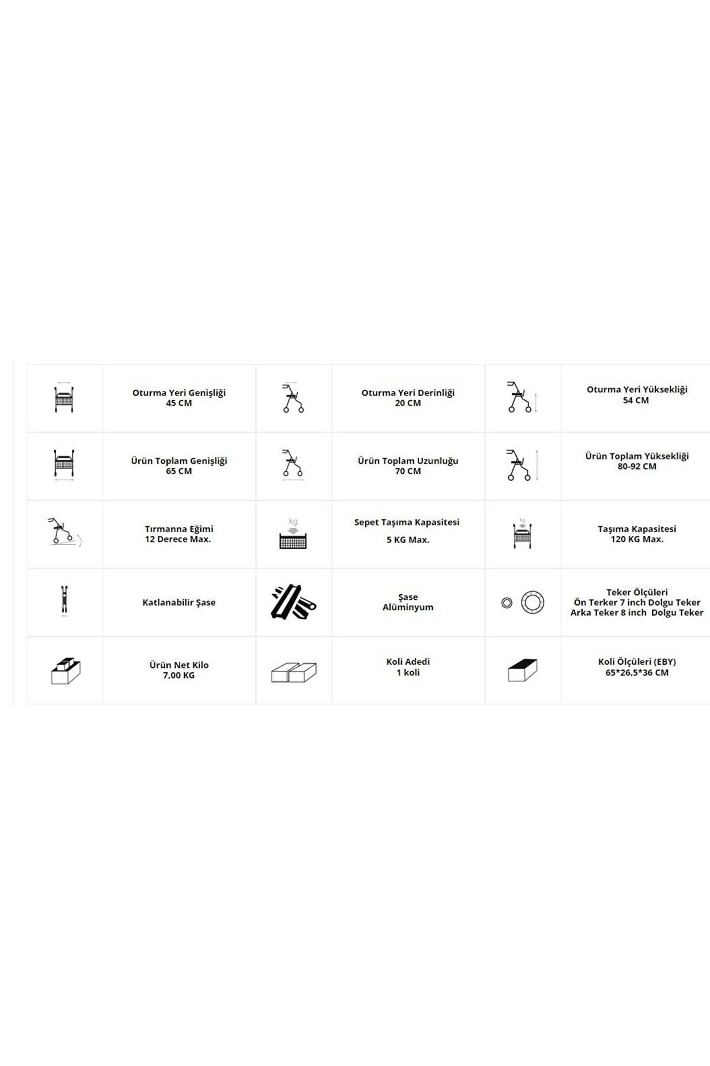 Alüminyum Tekerlekli Rolatör Kırmızı Standart beden 45 cm Gövde Yapısı: Alüminyum gövde. Demonte Özelliği: Kolaylıkla katlanabilir. Oturma Minderi / Sırtlık / Oturma yeri: Oturma yeri ve sırt şiltesi kolay temizlenebilir leke tutmaz kumaştan imal edilmiştir. Kolçak: Sürüş tutma kollarını 80 cm ile 92 cm arası istediğiniz ölçüde ayartabilirsiniz. Ön Tekeri: 7 inç dolgu ön teker, kendi etrafında 360 derece dönebilir, katlanabilir özellikte. Arka Tekeri: 8 inç dolgu arka teker Bagaj / Cep: Kullanıcının eşyalarını koyabileceği bir adet ön kısımda çanta bulunmalıdır. Fren Sistemi: Kilitlenebilir fren sistemi. İlave Özellikler: Baston taşıma aparatı.