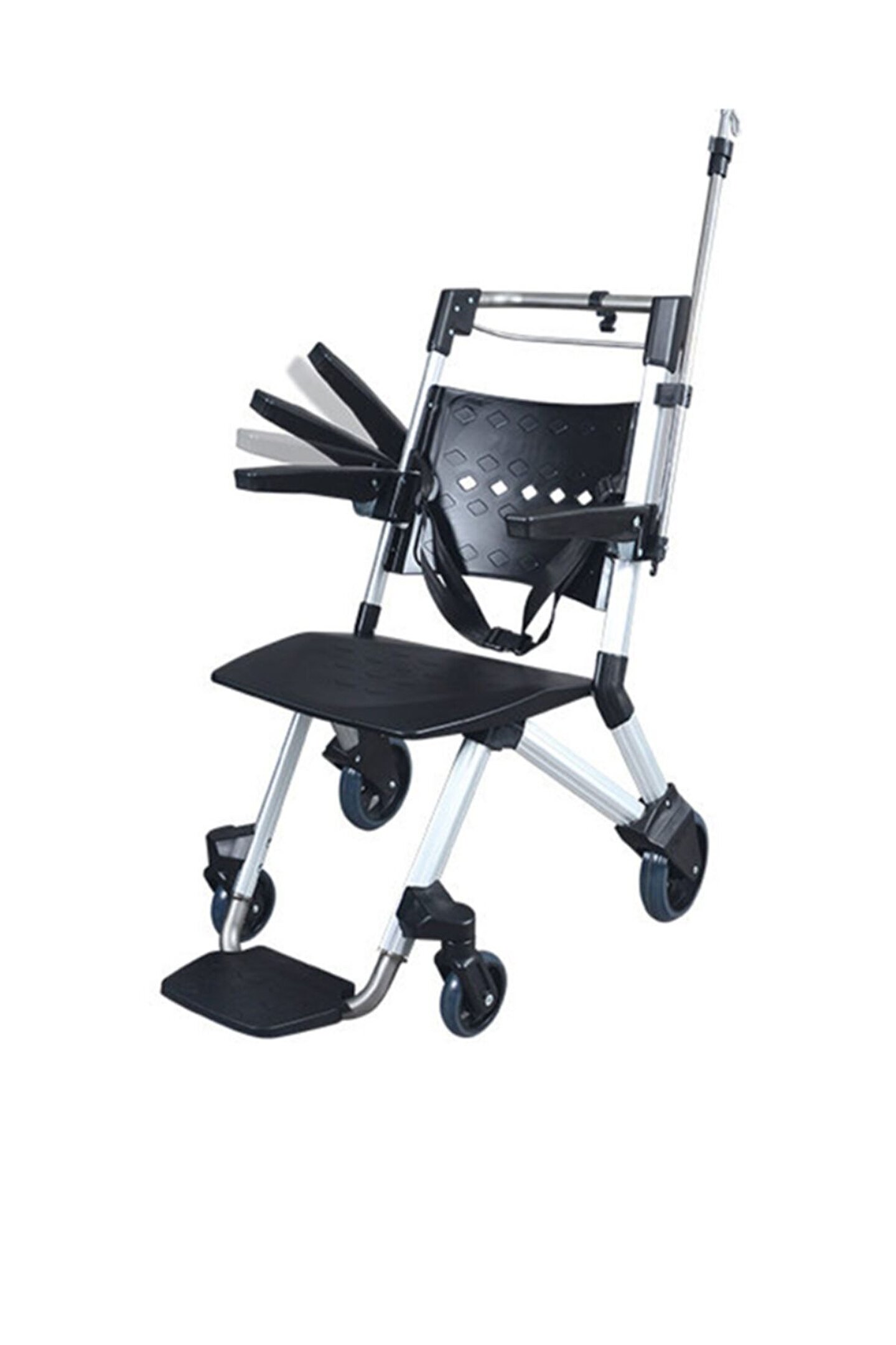 Medikaltec Ölçüler (Dıştan Dışa – Yükseklik) 102 cm (Serum askısı hariç) Derinlik 104 cm (Ayaklıklar açık halde iken tutamağın dış noktası) Genişlik 69.5 cm Oturma Yeri En geniş yeri 47 cm – En derin yeri 45.5 cm (Kavisli yapı) Şase Malzemesi 32×52 mm ölçülerinde 3mm, 12 mm aralığında kalınlıklı, dışı eloksal kaplı, özel şekilli Alüminyum profil, kavisli yapıdadır. 10×10 mm dolu, 15×10 mm dolu A 32×2 mm paslanmaz çelik boru (304 Kalite) 4mm sac, 5 mm sac, 8 mm sac (Galvaniz Kapılar) 4mm sac, 6 mm sac, 8 mm sac (304 Kalite) Ön Teker 12.5×3 cm – Arka Teker 20×5 cm Fren Sistemi Arka tekerleklerde merkezi fren sistemi (park halinde merkezi fren kilit sistemi) Kolçaklar Kolay temizlenebilir, dayanıklı plastik malzemeden yapılmış hareketli kolçaklar. Boyut: 332x60x58 mm (uzun, en geniş ve yüksek yerleri). Kavisli yapıdadır. Ayak Koyma Yeri Özelliği Plastik türevi malzemelerden imal edilmiş ve üzerindeki yay mekanizması ile kullanılmadığı zamanda yukarı doğru katlanarak yerden tasarruf sağlar. Ayak Pedal Ayarı Yukarı doğru hareketli (sandalyaye oturup kalkmalarda kolaylık sağlaması amaçlı ayak basma yeri bağlantılı yeri sabit olacak şekilde ön tarafı yukarı doğru hareket eder.) Hasta Taşıma Kapasitesi 140 kg Serum Askısı ve Özelliği Dış boru 21×1.5 mm, iç boru 16×1.5 mm paslanmaz malzemeden imal edilmiş olup açılıp kapanabilir özellikte tek kancalıdır. Teleskopik yüksekliği ayarlanabilir. İdrar Kancası Var Pozisyon Alma Özelliği Kullanılmadığı zamanlarda pedalın katlanması ve içiçe geçebilmesi sayesinde yer tasarrufu sağlar. Diğer Teknik Özellikler Emniyet kemeri bulunmaktadır