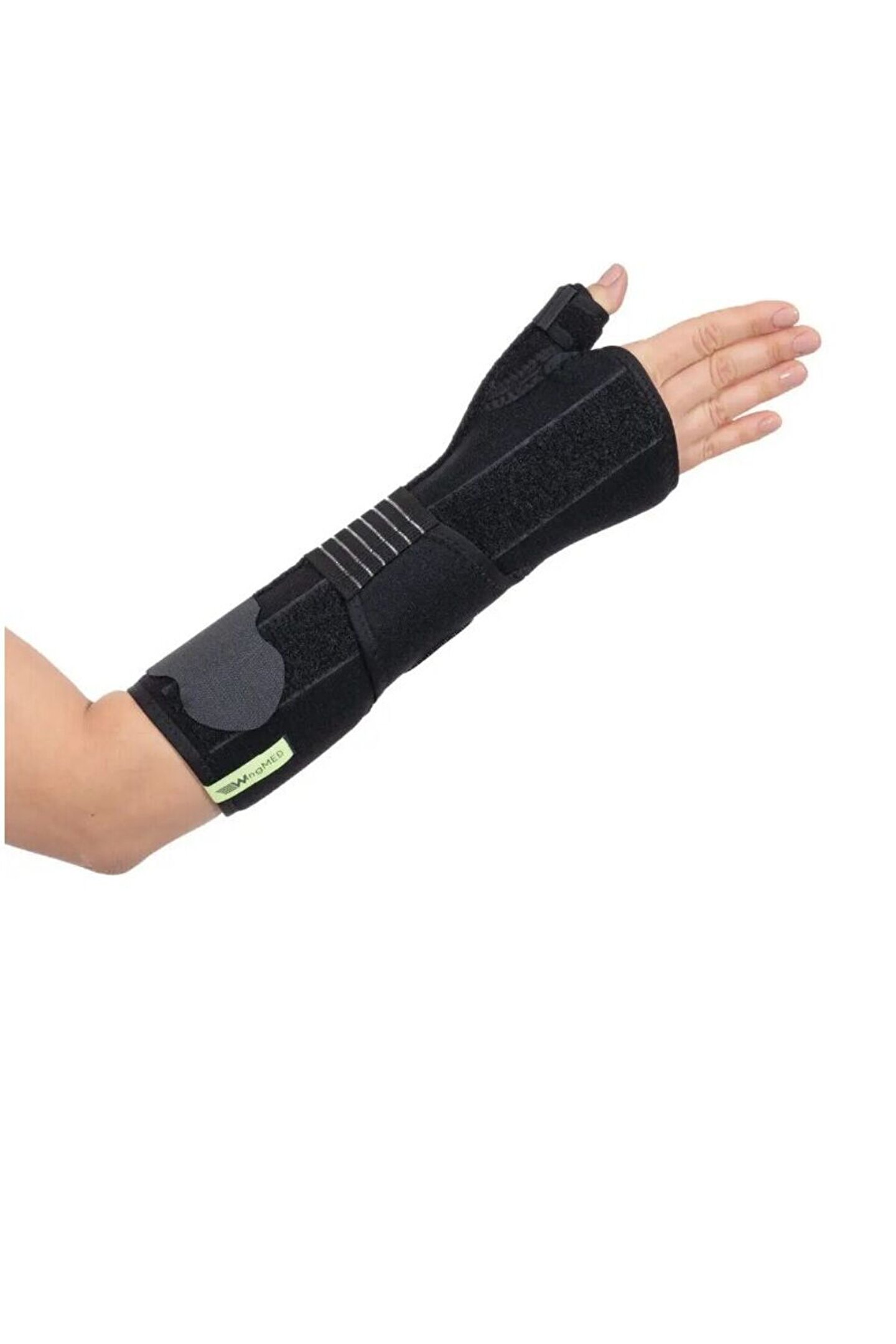 Wıngmed Başparmak Destekli Ön Kol Ateli (w 323) Başparmak Destekli Ön Kol Ateli Bileğin ve başparmağın nötral pozisyonda immobilizasyonunu sağlayan uzun bir atel çeşididir. ; Ön koldan başlayıp bileği kavrayacak şekilde tasarlanmıştır. ; İçerisinde ve başparmağın yanında birer adet alüminyum destek mevcuttur. ; Alüminyum desteğin yeri değiştirilerek iki elde de kullanımı mümkündür. ; Endikasyonlar De quervain sendromunda Karpal Tünel Sendromu Cerrahi müdahale sonrası rehabilitasyonda El bileği ve başparmak kireçlenmelerinde Tendon ve yumuşak doku hasarlarında Beden: Universal Size;
