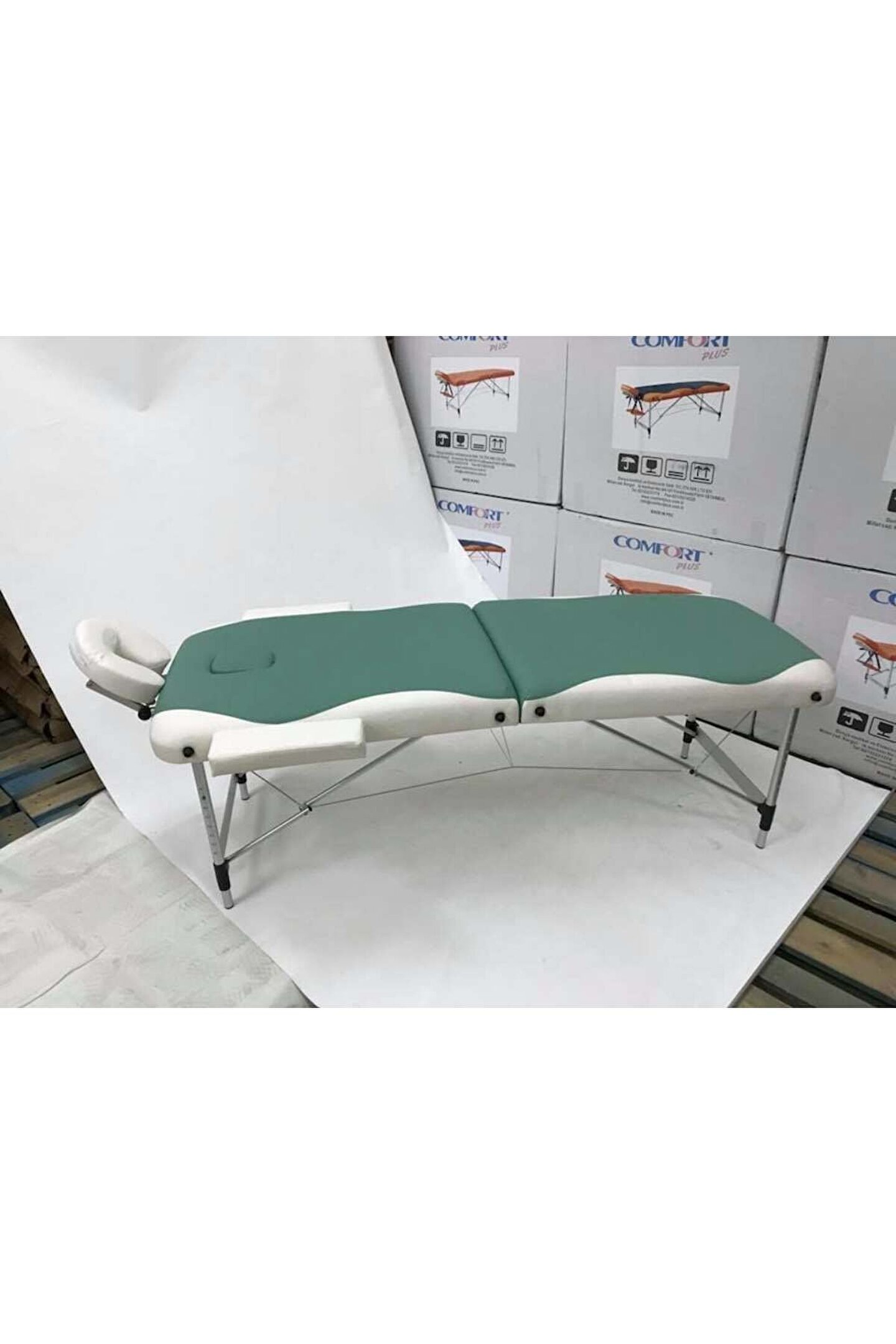 Alüminyum Masaj Masası Baş Tarafı Ayarlanabilir – çanta tipi masaj masası Ürün Özellikleri:Çanta Tipi Masaj Masası aliminyum yeşil/beyaz 1- Ürün vinyl deri, Alüminyum ayak ve kablolardan oluşmaktadır. 2- Ürünün yüksekliği 54 cm ve 82 cm aralığında ayarlanabilir. 3- Ürünün kafa ve el konulan kısımları da katlanabilir özelliğe sahiptir. 4- Ürünün sırt üstü ve yüz üstü olmak üzere iki şekilde de yatarken ellerinizi koymak için yerleri vardır. 5- Ürünün kurulumu gayet kolay olup, herhangi bir alete gerek yoktur. 6- Ürünün bir adet kumaş çantası bulunmaktadır. Ürün katlanmış şekilde bu çantanın içine konularak taşınabilir.