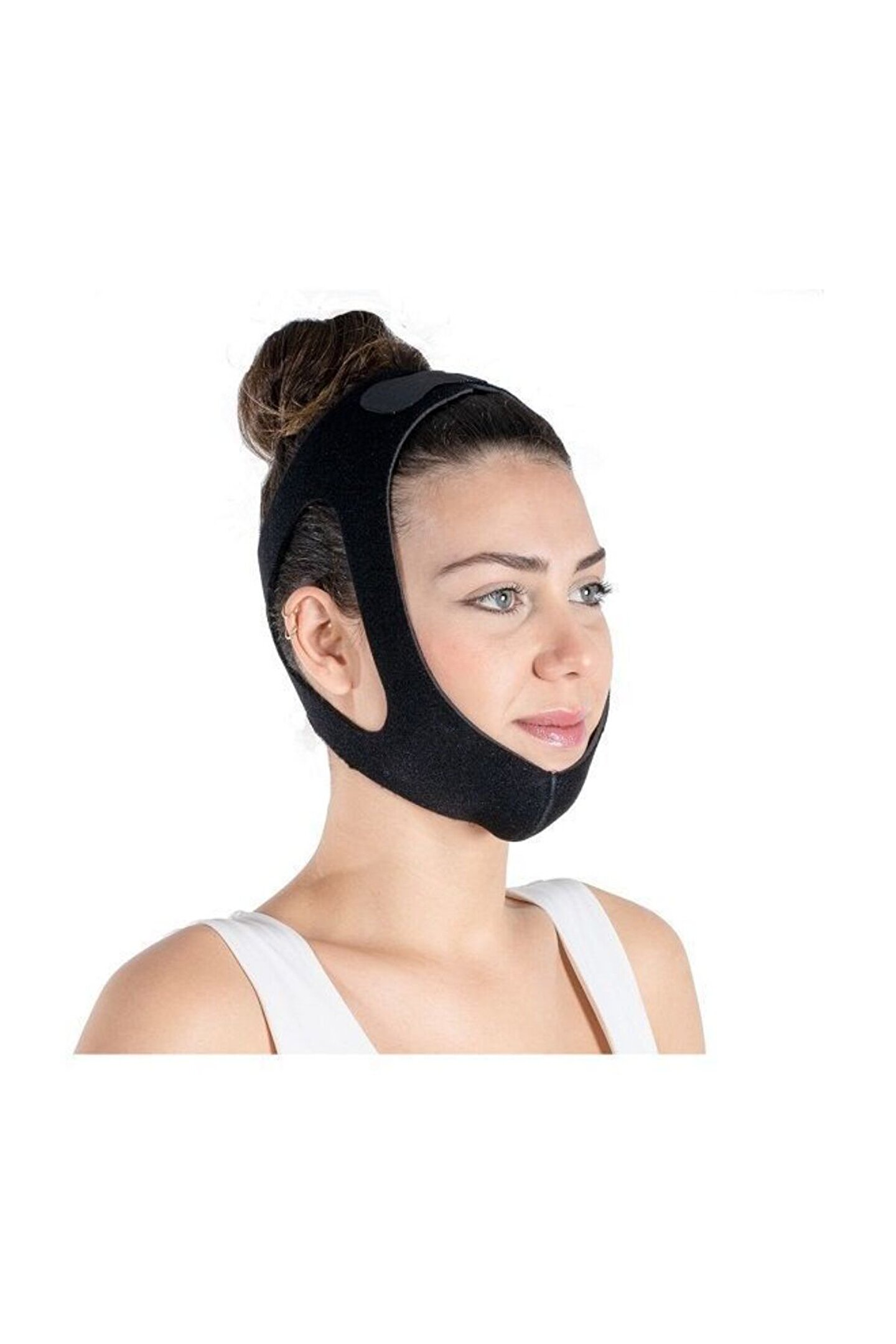 Çene kapatma bandı horlama uyku bandajı çene kapatma bandı bedensiz üretilmektedir. Cırt bant sistemi ile tüm yüz hatları ile uyum sağlamaktadır. Çene kapatma bandı, çene sarkması ve burun dan nefes almak için takviye edici bir üründür. Bunun yanında çene kapatma bandı estetik operasyonları takiben şişmeleri azaltmada yararlı olur. Tasarımı itibari ile çene kapatma bandı, hassas cerrahi alanları ani hareketlerden (diğer bir deyişle hapşırma veya öksürme) sert ve hassas bir şekilde korur. Yüz, çene, otoplasti ve alt çene (çene altı) çene, jöle ve yanak içeren şişkin liposuction için ideal ameliyat sonrası destekleyici üründür. - 3 katmanlı velcro kaplı yumuşak süngerli kumaş - 4cm genişliğinde ense sabitleme velcro - 2cm genişliğinde baş üstü sabitleyici velcro - Bedensiz - Siyah renk.