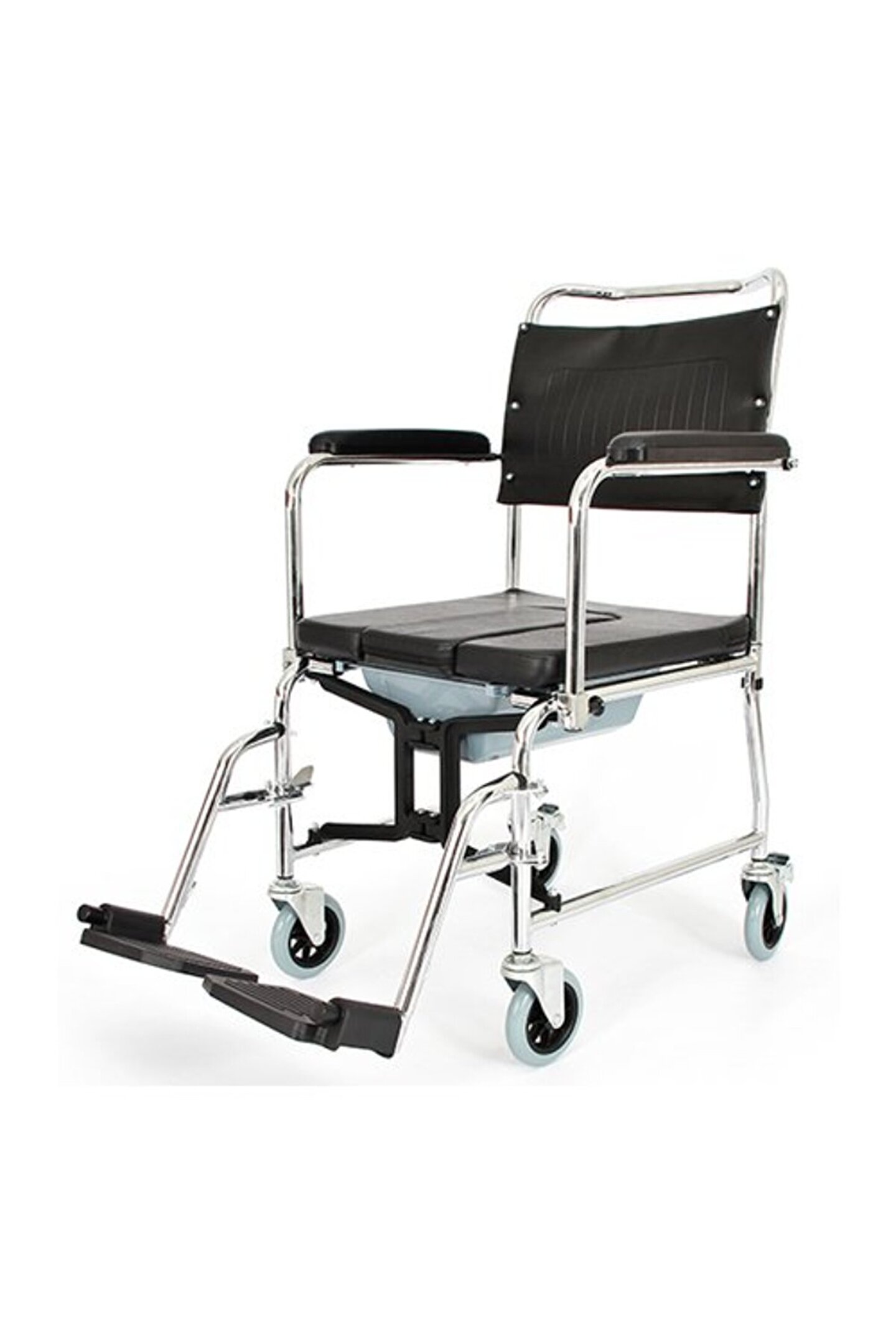 DM969 TEKERLEKLİ KOMOD Katlanabilir özelliği ile rahatlıkla taşınabilir.i Krom kaplamalı çelik şasesi ile sağlam bir iskelet oluşturur. Tuvalet lazımlığı ile klozet üzerinde olmadan da kullanılabilir. Sırtlık çıkarılabilir. Konforlu minderi sayesinde uzun süre oturulabilir. Kolçaklar aşağıya doğru hareket ettirilebilir. Ayaklıklar çıkabilir. İthal bir üründür. Teknik Özellikler Oturma genişliği: 46 cm Toplam genişlik: 55 cm Uzunluk: 80 cm Yükseklik: 95 cm Ağırlık: 10 Kg Taşıma kapasitesi: 120 Kg DM969 TEKERLEKLİ KOMOD