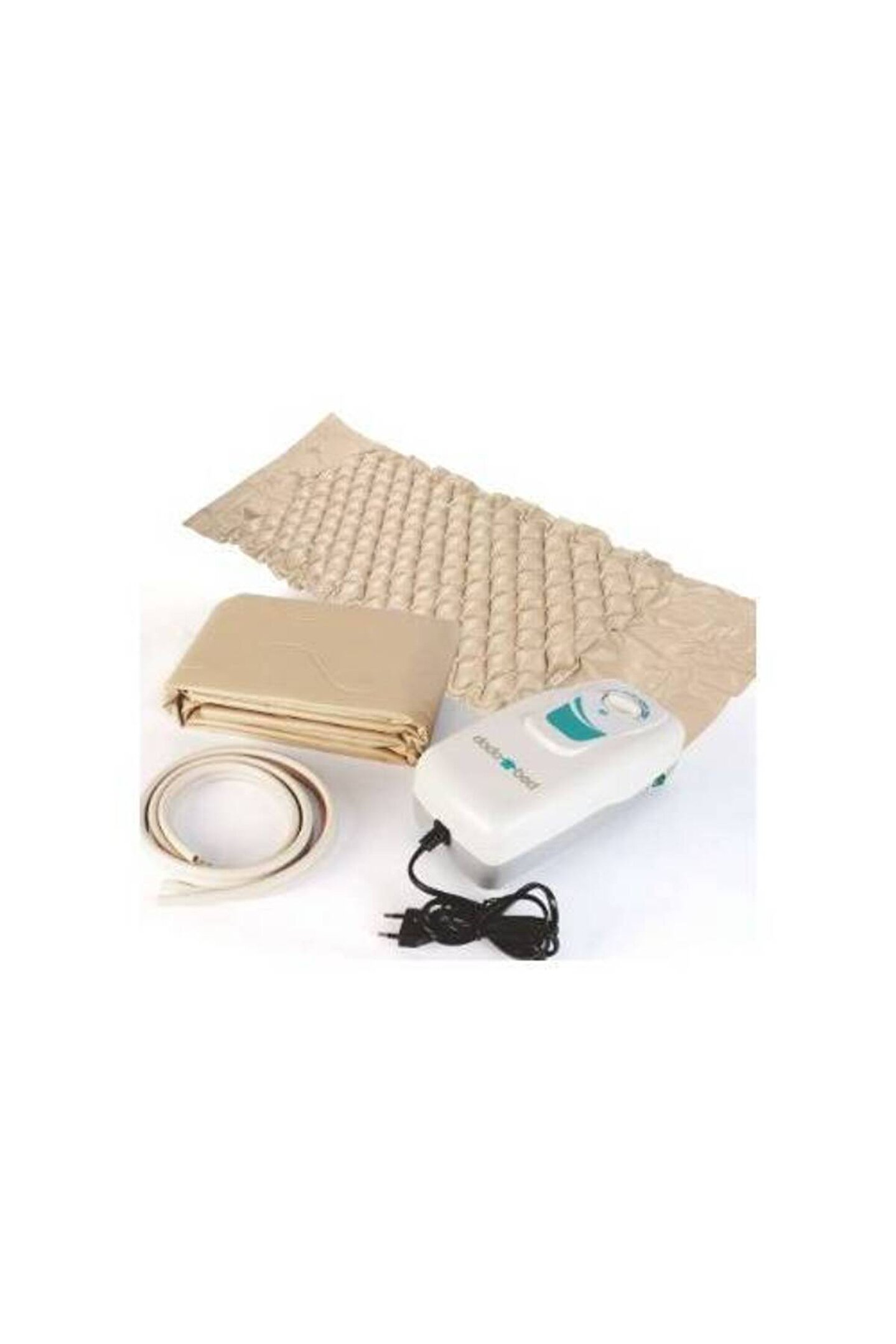 DD.HY.0001 Yatak Yaralarını Önleyen Yatak Sistemi Baklava Dilimli Yatak 2.5"x130 kabarcık hücresi Uç kanatları Boyutlar : 200(L)x90(W)x6.5(H) cm Malzeme : PVC Renk : Bej Ağırlık : 2.0 kg Tamir kiti içerir. Pompa Boyutlar : 26(L)x11(W)x9.5(H) cm Hava Çıkışı : 5 litre/dk Basınç Aralığı : 45 - 110 mmHg Döngü Süresi : 10 dk Güç Tüketimi : 7 W Ağırlık : 0.9 kg
