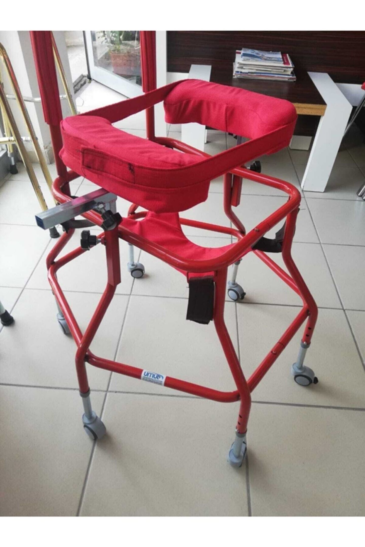 ENGELLİ ÇOCUKLARIN YÜRÜMEYE ALIŞTIRILMASI İÇİN TASARLANMIŞ FİZYOTERAPİ ÜRÜNÜDÜR. YÜKSEKLİĞİ AYARLANABİLİR.ALTIGEN ALTI AYAKLI 75MM ÇAPINDA HALI ÜZERİNDE KOLAYCA HAREKET EDEBİLEN TEKERLEKLERİ MEVCUT OLUP BU TEKERLERDEN İKİ TANESİ FRERNLİDİR. KOLTUK ALTI İLE ZEMİN ARASI MESAFE 60CM DEN 90CM E KADAR OLAN BÜTÜN KİŞİERİN KULLANIMINA UYGUNDUR. SİPARİŞ ESNASINDA ÇOCUĞUNUZUN KOLTUK ALTI VE ZEMİN ARASI MESAFEYİ ÖLÇÜP NOT OLARAK EKLEYEREK ÇOCUĞUNUZA UYGUN OLAN ÜRÜNÜN GÖNDERİMİ SAĞLANABİLMEKTEDİR. GENELLİKLE 5-13 YAŞ RASI ÇOCUKLARIN KULLANIMINA UYGUNDUR.