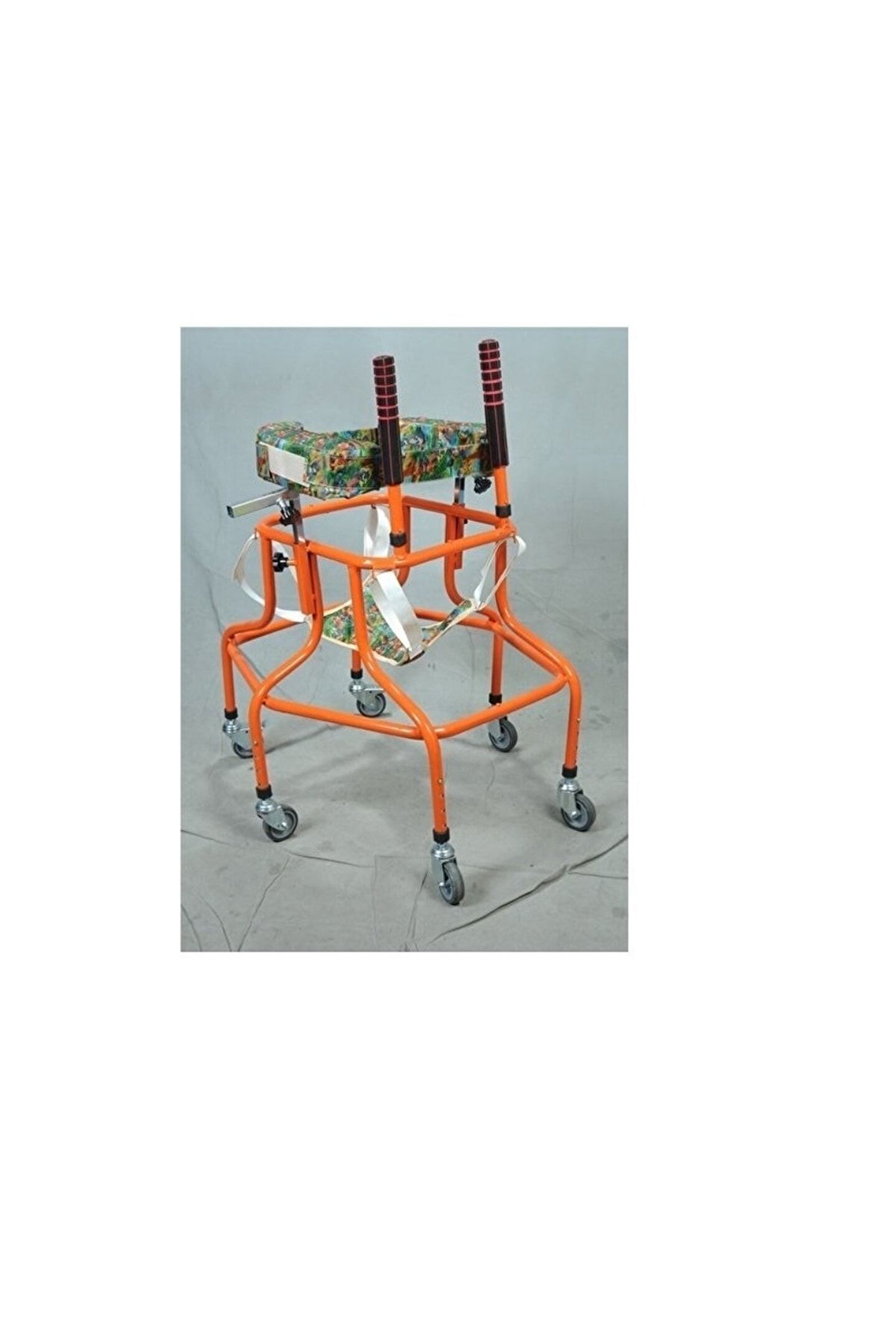 ELEKTROSTATİK TOZ BOYALI 6 tekerlekli yürüteç Engelli Çocuk Örümceği 6 8 Yaş Arası Için yaş arası engelli çocuk hastaların yürüme kabiliyetlerini ve enerji depolarını boşaltmak için tasarlanmış üründür.bu ürünü kullanan çocukların kemik gelişimi sağlam ve ayakları üstüne düz ve sağlam basabilme direncini geliştirir. Cihaz sayesin çocuğun gelişen kemikleri direnç kazanır, gelişimi ve vucut yapısı direnç kazanır,cihazın içine koyulan çocuğun önce emniyeti alınır ayaklarının arasından geçirilen aparatla ayakları yere bastırılır kolları koltuk altından cihazın kol koyulan mekanizmanın üstüne otutturulur ve hasta kendi başına bırakılır.