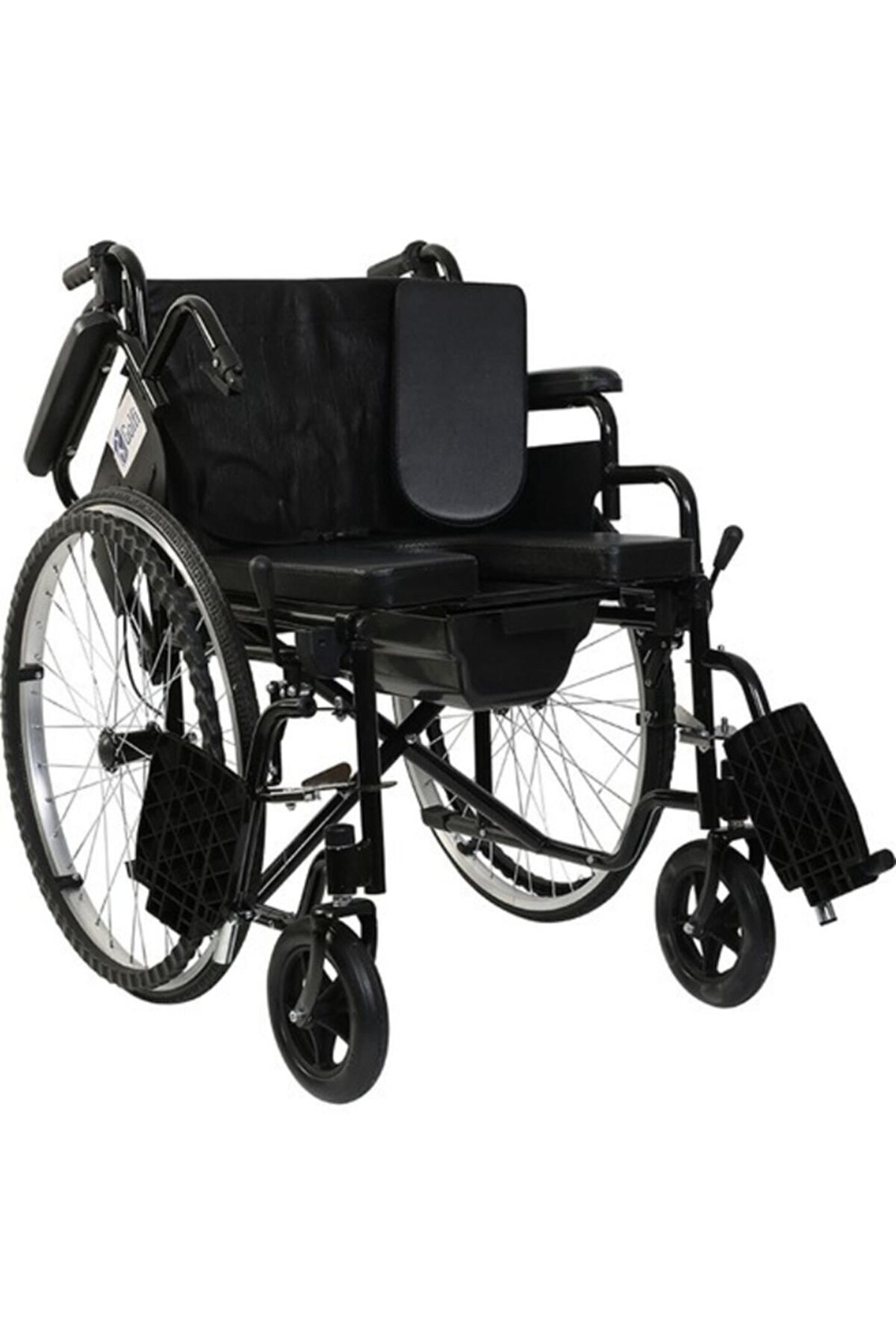 g-120 klozetli manuel tekerlekli sandalye / commode manual wheelchairklozetli tekerlekli sandalye • çıkarılabilir kolçaklar kullanıcının yatak, araba vb.; Alanlara transferini kolaylaştırır.; • katlanabilir gövde yapısı taşıma ve depolama kolaylığı sağlar.; • çıkarılabilir ayaklıkları sayesinde asansör vb.; Dar alanlarda ekstra manevra kabiliyeti sağlar.; • kullanıcının tuvalet ihtiyacını karşılayabilmesi için lazımlık şeklinde oturma yeri ve koku önleyici kapaklı lazımlık kovasına sahiptir.; • basamak atlatma çubuğu, el tutaçları ve refakatçi frenleri sayesinde refakatçi kullanımına uygundur.; • vinil döşeme, uzun süreli kullanımlarda bakteri oluşumunu engeller.; Oturma yeri genişliği : 46 cm oturma yeri derinliği : 43 cm oturma yeri yüksekliği : 54 cm oturma yeri açısı : - sırtlık yüksekliği : 37 cm kolçak yüksekliği : 17 cm toplam genişlik : 66 cm toplam yükseklik : 90 cm toplam uzunluk : 102 cm katlanır genişlik : 29 cm arka tekerlek : 24’’ pu dolgu ön tekerlek : 6 ’ pu dolgu materyal : Çelik tilt özelliği : - ürün ağırlığı : 20.10 kg maksimum taşıma kapasitesi : 110 kg koli ölçüleri : 81×28×90 cm konteyner yükleme adetleri : 140 ad/20’dc, 354 ad/40’hq commode wheelchair • easy transferable to bed,car etc.; With detachable armrests.; • foldable frame for easy transport and storage.; • detachable footrests offering easy storage and extra maneuverability into narrow places, elevators etc.; • the seat designed as a toilet apparatus for eliminate needs with deodizer bucket.; • curb climb sticks, handles and united attendant brakes for convenient attendant usage.; • anti-Bacterial upholstery protects the user againist to bacterial infections while seated.; Seat width : 46 cm seat depth : 43 cm seat height : 54 cm seat angle : - backrest height : 37 cm armrest height : 17 cm overall width : 66 cm overall height : 90 cm overall length : 102 cm folded width : 29 cm rear wheel : 24’’ pu filled front wheel : 6’’ pu filled material : Steel seat tilt : - product weight : 20.10 kg maximum loading capacity : 110 kg dimensions of carton : 81*28*90 cm loading quantities for containers : 140 pcs/20’dc, 354 pcs/40’hq