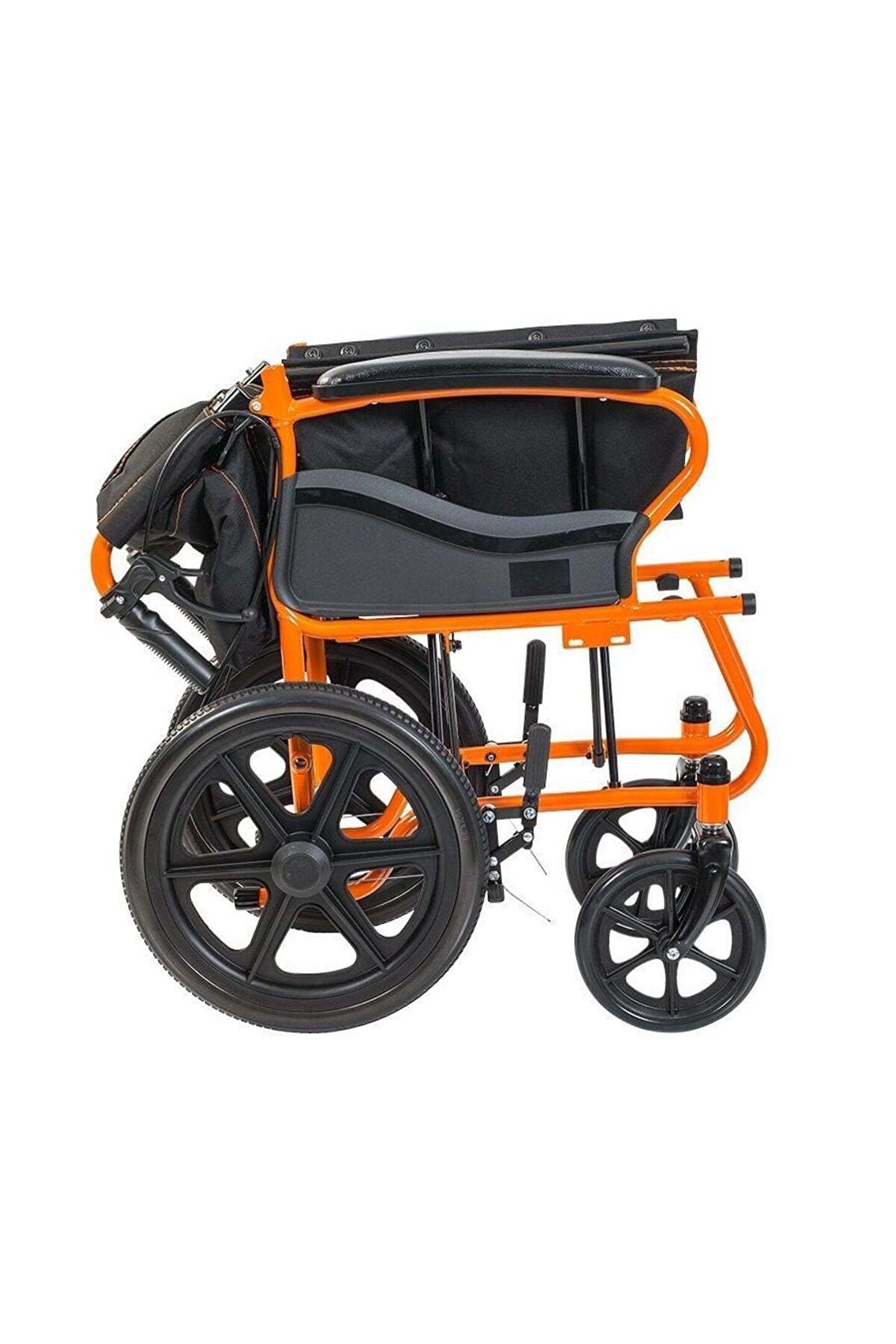 G105 Transfer Sandalyesi G105, sadece refakatçi tarafından kullanılan, hasta, yaşlı ve engelli nakil sandalyesidir. Refakatçi kullanımlı hasta taşıma sandalyesi, ev içerisinde, hastanede vb. gibi alanlarda yürüme yetisini kaybetmiş kişilerin mobilize ihtiyaçlarını karşılar. Klasik manuel tekerlekli sandalyelere göre, asansör, dar kapılar gibi alanlara rahatça sığacak ölçüdedir. Toplam genişliği 65 santim olan hasta transfer sandalyemizin topla ağırlığı ise 13 kilodur. Hafif oluşu ürünün rahat kullanıma imkan tanırken, 120 kiloya kadar olan kişileri taşıyacak kapasiteye sahiptir.HASTA TAŞIMA SANDALYESİNİN GENEL ÖZELLİKLERİ Katlanabilir şase özelliğiyle kolay depolanma ve taşıma imkanı Çıkartılabilir ayaklık ve sırt kırma özelliği ile katlandığında daha küçük boyuta gelebilme imkanı Refakatçi freni sayesinde daha rahat kullanım imkanı Toplam 13 kilo ağırlık ve 120 kilo taşıma kapasitesi ÖLÇÜLER Oturma Yeri Genişliği 44 cm Oturma Yeri Derinliği 41 cm Oturma Yeri Yüksekliği 44 cm Sırtlık Yüksekliği 40 cm Kolçak Yüksekliği 23 cm Toplam Genişlik 65 cm Toplam Yükseklik 89 cm Toplam Uzunluk 91 cm.