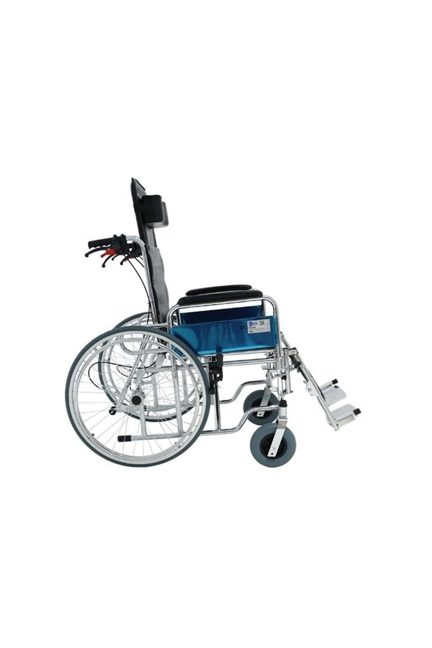 180 derece sırt yatar Ayak kalkar tekerlekli sandalye Refakatçi fren sistemi Çelik, dayanıklı gövde Anti-bakteriyel ve leke tutmaz döşeme Ergonomik baş desteği Paslanmayı önleyici nikelaj boya Katlanabilir şase 22" PU dolgu arka, 6" PU dolgu ön tekerlekler