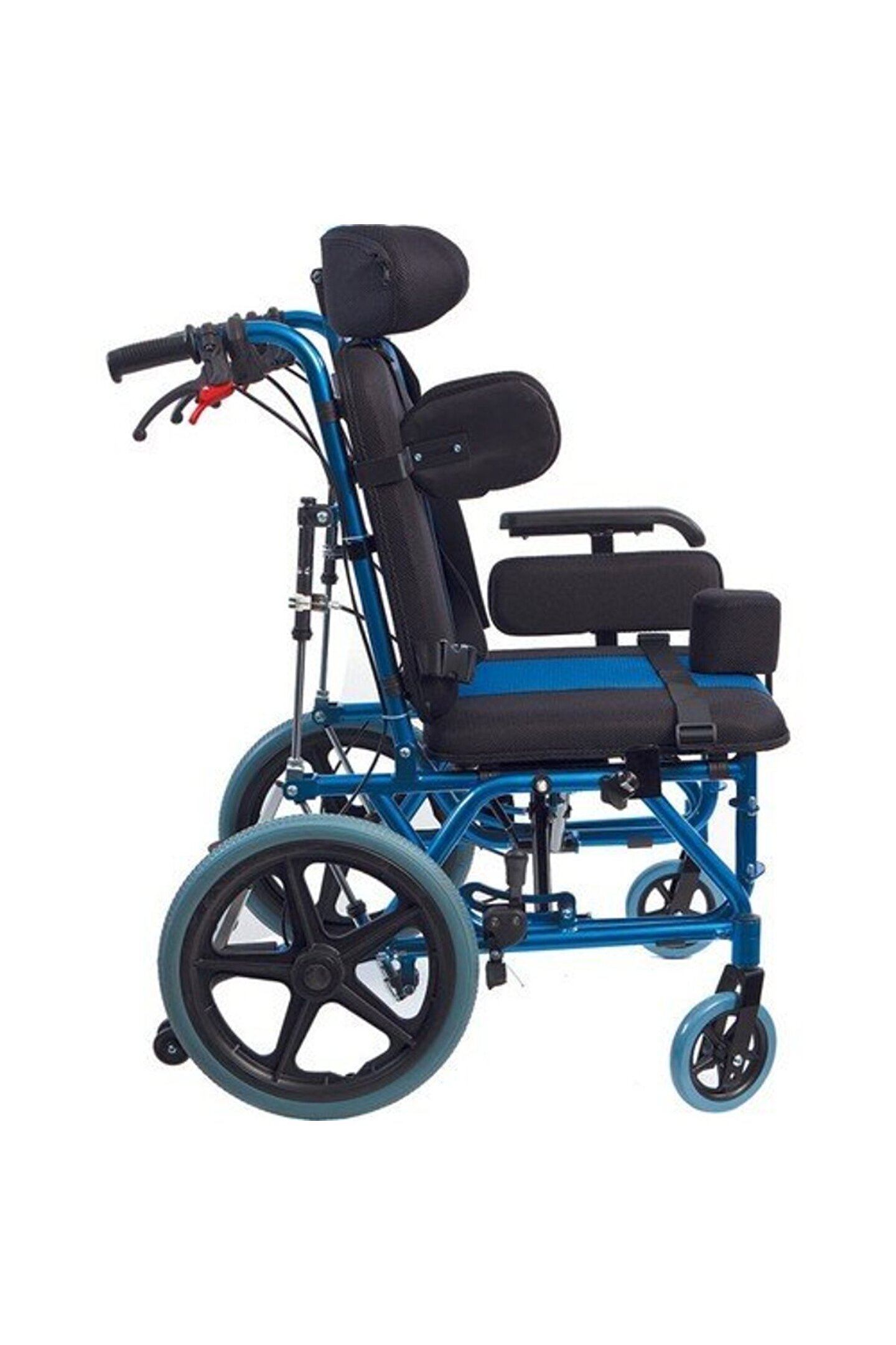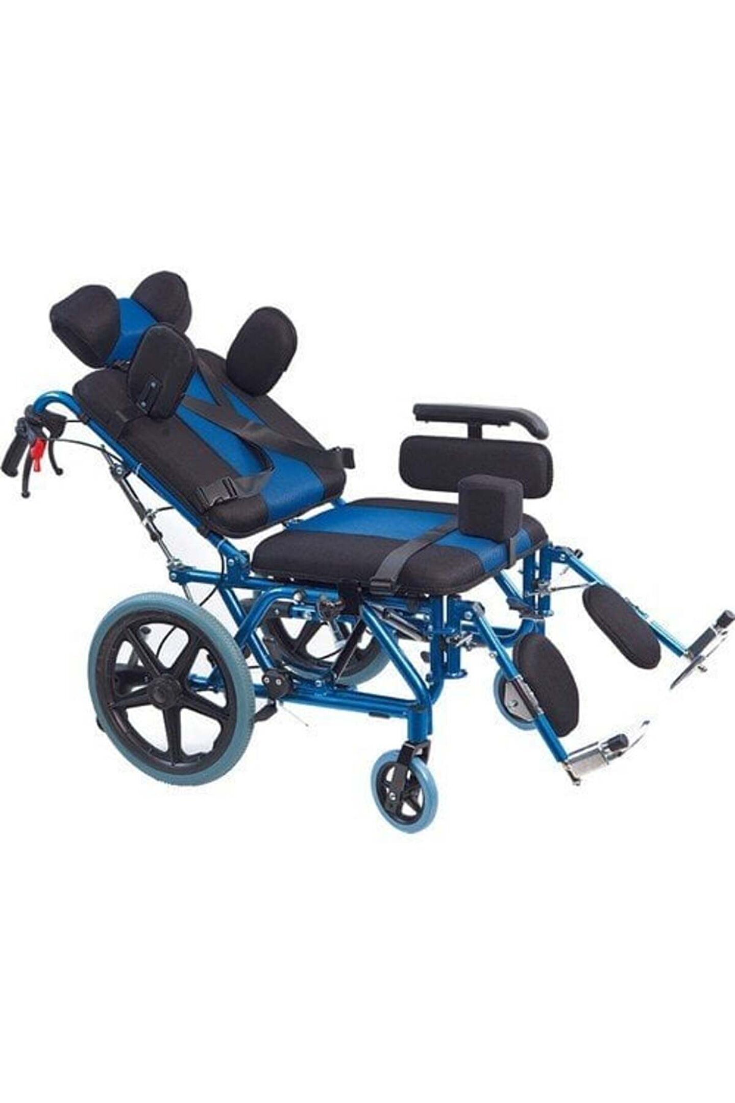 Medikaltec Golfi G-458 Selebral Palsi Manuel Tekerlekli Sandalye Golfi G-458 Selebral Palsi Manuel Tekerlekli Sandalye / Celebral Palsy Manual Wheelchair Selebral Palsi Tekerlekli Sandalye • Cerebral Palsy ve postür bozuluğu olan kullanıcılara özel tasarlanmıştır. ; • Uzun süreli kullanımlarda kullanıcı rahatlığı göz önünde bulundurularak tasarlanmış sırtlık kısmı 160° yatırılarak şezlong pozisyonu alabilmektedir. ; • Kullanıcının baş yapısına uygun ergonomiklikte pozisyonlandırılabilir ve gerektiğinde başı sabitlemek için kemeri bulunan bir başlığa sahiptir. ; • Sırtlık kısmına monte ve ayar imkanı sağlayan gövde tutucuları kullanıcının gövdesini dik pozisyonlandırmaya yarar. ; • Kullanıcının vücut tipine göre pozisyonlandırılabilir bacak arası takozu kullanım esnasında kaymayı engeller. ; Ayrıca göğüs kemeri ile de kullanıcının sabit pozisyon alabilmesi desteklenir. ; • Kullanıcı isteğine göre oturma yeri 3°-22° arası tilt olma özelliğindedir. ; • Çıkarılabilir kolçaklar kullanıcının yatak, araba vb. ; alanlara transferini kolaylaştırır. ; Ayrıca kolçaklar 5 cm dışa açılarak oturma yerini genişletilebilir özelliktedir. ; • Çıkarılabilir ayaklıkları sayesinde asansör vb. ; dar alanlarda ekstra manevra kabiliyeti sağlar. ; • Ayaklıklar kullanıcı konforu düşünülerek, bacaklarını ileri doğru uzatabilmesine olanak sağlamak için 90° kaldırılabilir olarak tasarlanmıştır. ; • Ayaklık ve baldırlık kısımları kullanıcı boyuna göre ayarlanabilir özelliktedir. ; • Katlanabilir gövde yapısı taşıma ve depolama kolaylığı sağlar. ; • Basamak atlatma çubuğu, el tutaçları ve refakatçi frenleri sayesinde refakatçi kullanımına uygundur. ; • Eğimli alanlarda ve şezlong pozisyonunda kullanımı sırasında kullanıcının geriye düşmesini engelleyen anti-tipper tekere sahiptir. ; • . ; Oturma Yeri Genişliği : 46 cm Oturma Yeri Derinliği : 40 cm Oturma Yeri Yüksekliği : 48 cm Oturma Yeri Açısı : - Sırtlık Yüksekliği : 40 cm Kolçak Yüksekliği : 25 cm Toplam Genişlik : 61 cm Toplam Yükseklik : 103 cm Toplam Uzunluk : 103 cm Katlanır Genişlik : 30 cm Arka Tekerlek : 16’’ PU Dolgu Ön Tekerlek : 6’’ PVC Dolgu Materyal : Alüminyum Tilt Özelliği : Evet Ürün Ağırlığı : 22.20 kg Maksimum Taşıma Kapasitesi : 120.00 kg Koli Ölçüleri : 81×40×97 cm;