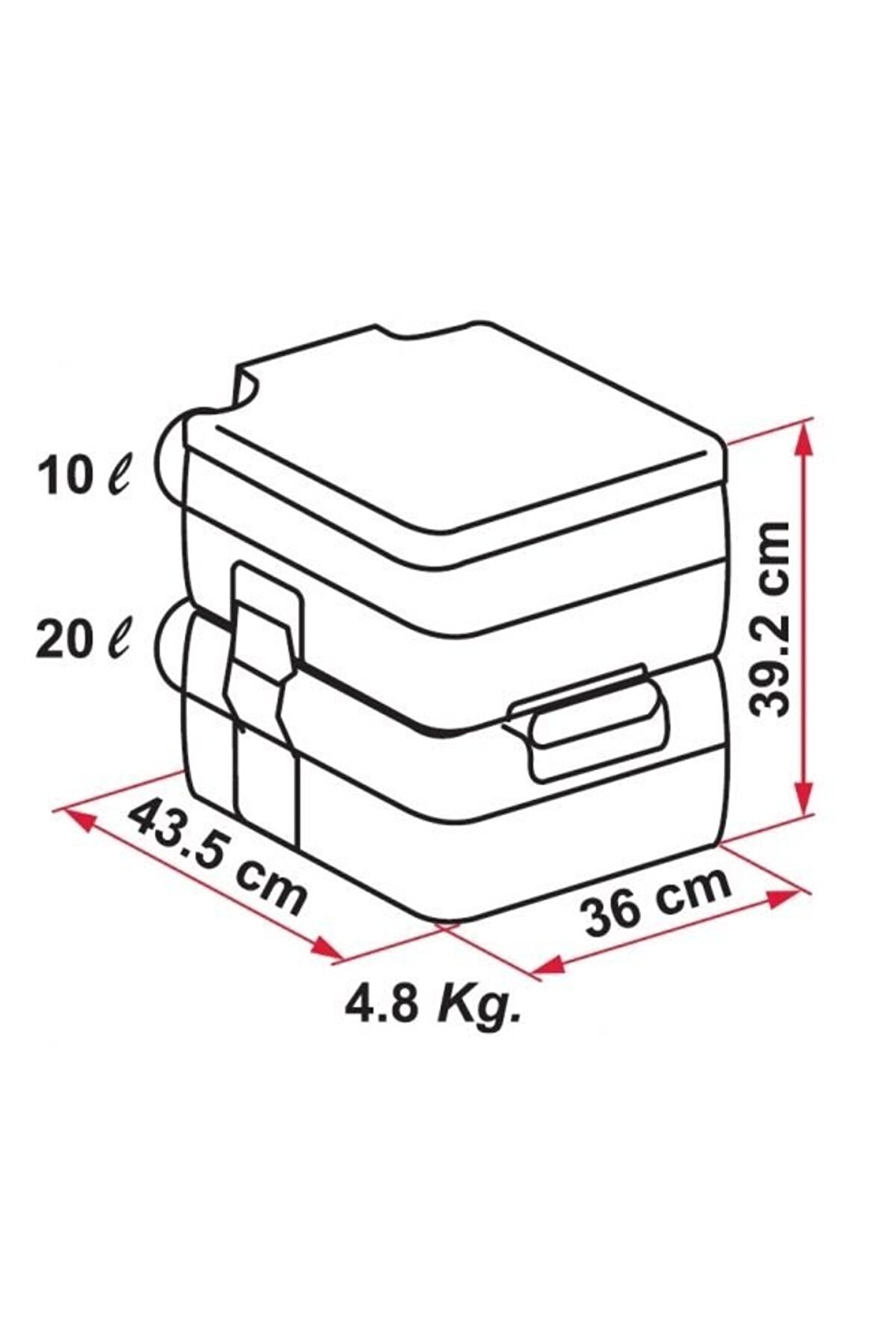 Portatif tuvalet 20 L.Sulu Portatif wc seyyar tuvalet Üst Tank (Temiz SU) Kapasitesi: 10 Litre Alt Tank (Pis Su) Kapasitesi: 20 Litre