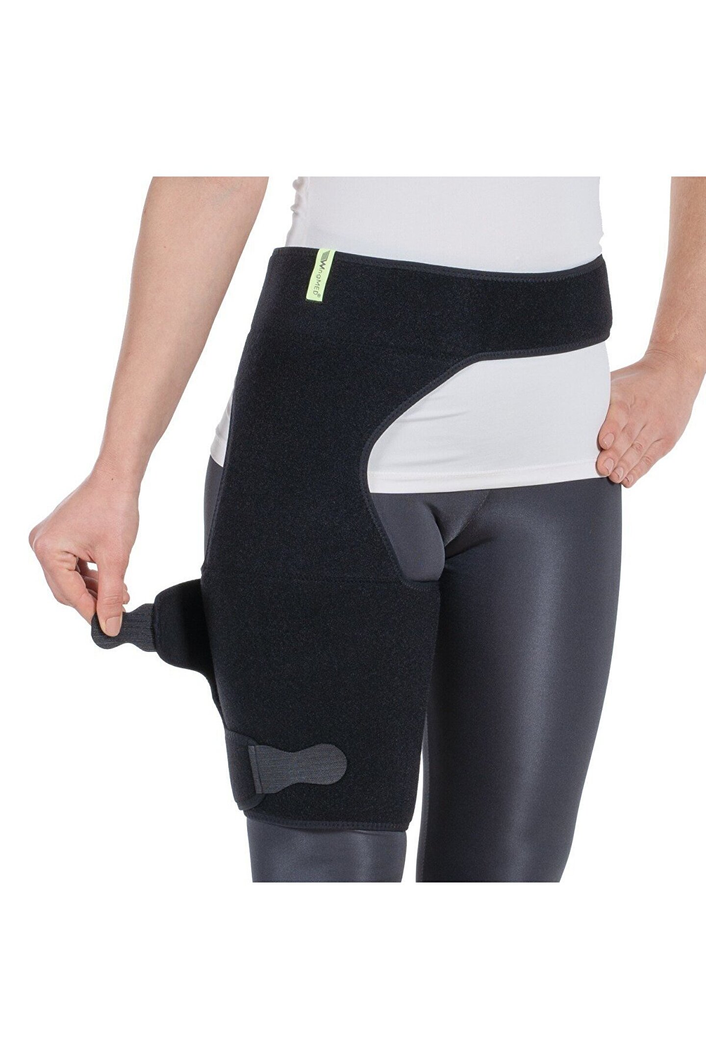 Üst baldırı destekleyecek şekilde tasarlanmıştır. Bölgeye yaydığı ısı kompresiyon sayesinde ağrıların azalmasını sağlar. Üzerindeki cırtlar kullanım kolaylığı sağlar. Belden kemerli olması sebebiyle gün içindeki kullanımda hastaya rahatlık sağlar. UNIVERSAL SIZE