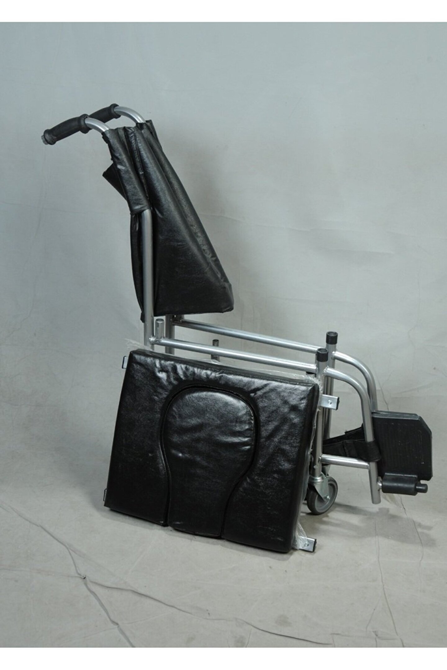 klozete yanaşan tekerlekli sandalye Teknik Özellikler: Ev Tipi Küçük Tekerli Tuvaletlik klozete uyumlu sandalye Ev Tipi Küçük Tekerlekli tuvaletlik ve banyo arabası.. Kolaylıkla katlanıp, Taşınabilir Yan kollar çıkar Tuvalet Tuvalet aparatlı Oturma Yeri Genişliği: 44 cm Oturma Yeri Derinliği: 43 cm Oturma Yeri Yüksekliği: 50 cm Oturma Yeri Açısı: - Sırtlık Yüksekliği: 38 cm Kolçak Yüksekliği: 23 cm Toplam Genişlik: 53 cm Toplam Yükseklik: 91 cm Toplam Uzunluk: 86 cm Katlanır Genişlik: 13 cm Arka Tekerlek: 4’’(100 mm) PU Dolgu(Frenli) Ön Tekerlek: 4’’(100 mm) PU Dolgu