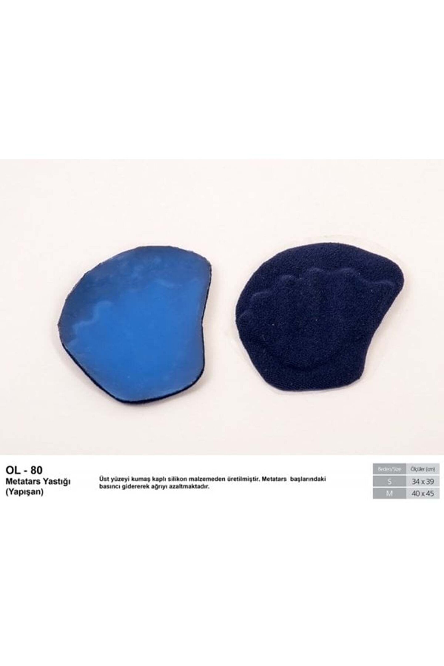 Kumaş Yapışkanlı Metatars Small Ürün Özellikler • Metatars bölgesindeki basıncı karşılıyarak ağrının giderilmesine yardımcı olur. • Yapışkan özelliği sayesinde her türlü ayakkabı ve terlik tabanında kullanılır.