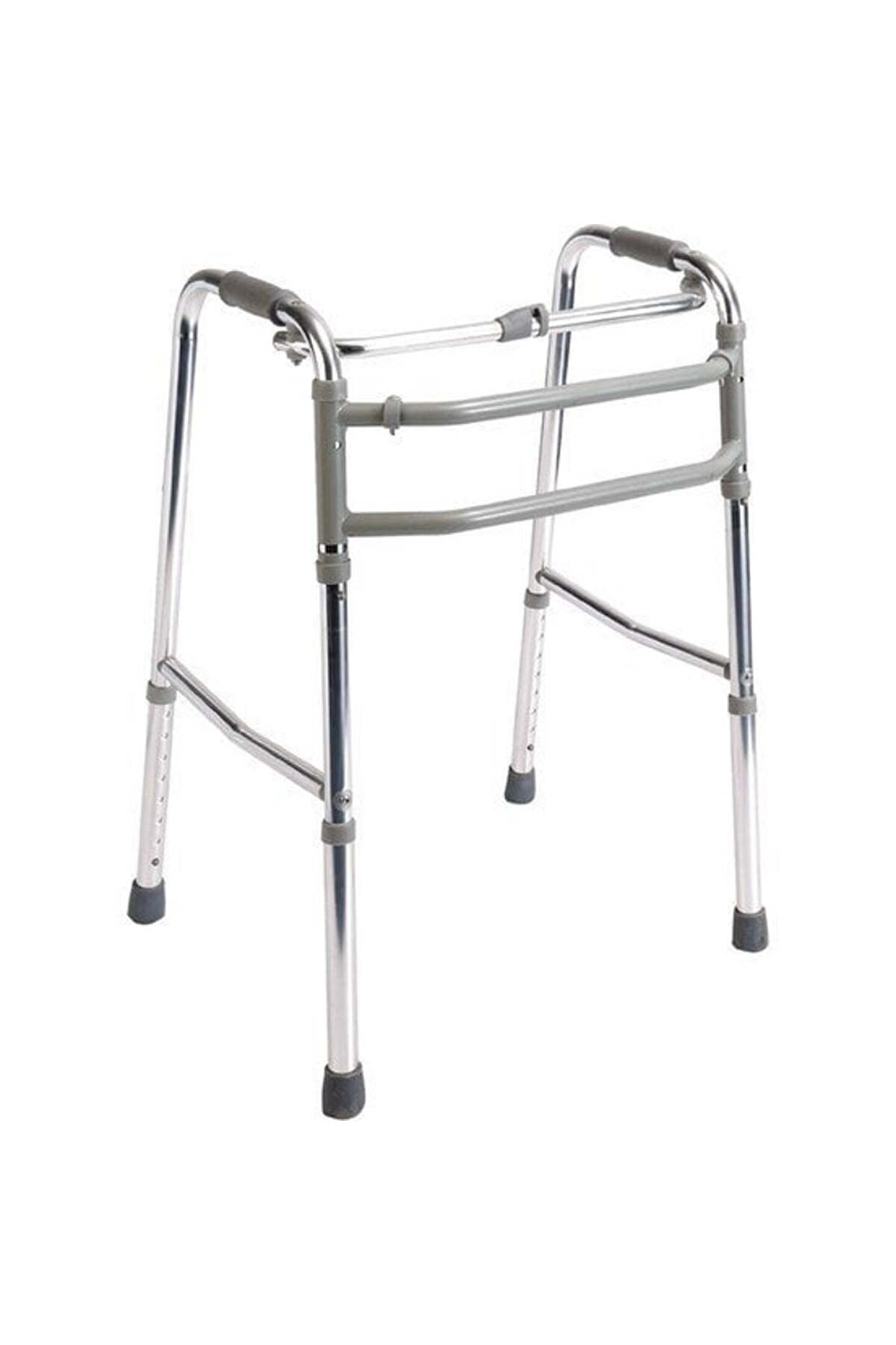 Alüminyum Walker • Hafif alüminyum yapısı ile taşıma kolaylığı sağlar. • Dönen gövde yapısı kullanıcı ile birlikte hareket etmeye olanak tanır. • Yerde iz bırakmayan ve kaymayan kauçuk pabucları ile güven verir. • Kullanıcı tipine göre 8 kademede bacak boyu ayarlanabilir. • Konforlu köpük el tutamaçları ergonomik yapıdadır. • Tek buton ile kolayca tek elle katlanabilir. • Katlanma özelliği ile kolay taşıma ve depolama sağlar. Uzunluk : 48 cm Genişlik : 56 cm Yükseklik : 75.50-93.50 cm Ürün Ağırlığı : 2.70 kg Malzeme Rengi : Krom Parçaların Rengi : Gri Karton Ölçüleri : 55×29×78 cm Adet/Karton : 4 Adet/Karton