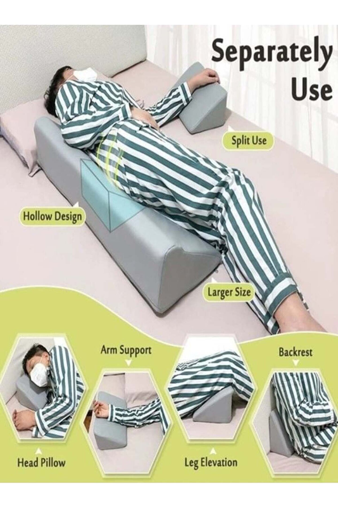 Medikal Pratik Hasta Çevirme Aparatı Silinebilir ?tıbbi köpük takoz?benzersiz tasarımı, birlikte ve ayrı ayrı kullanılmasına izin verir. Ortası oluklu olarak tasarlanmış büyük yastık daha nefes alabilir ve yatak yaralarını ve deri döküntülerini etkili bir şekilde önler. Küçük kama başı, elleri, dizleri ve bacakları destekleyebilir. ?su geçirmez pu deri? leke tutmayan dış malzeme, temiz bir havluyla kolayca temizlemenizi sağlar. Içerideki süngeri lekeleyen ter lekeleri veya içecekler hakkında endişelenmeyi bırakın, yastığınızı temiz ve hijyenik tutmaya yardımcı olun ve hemşirelik stresini azaltın. ?30 derece eğimli?büyük r şeklindeki kama yastık, vücudu kaldırmak için mükemmel bir eğim eğimi ile tasarlanmıştır. Basınç ülserlerini, yatak yaralarını etkili bir şekilde önleyin, ameliyat sonrası ağrıyı hafifletin ve yaranın hızla iyileşmesine yardımcı olun. Konumlandırma yatağı takozu?toplam boyut 34 x 12 x 7 inç, yüksek yoğunluklu köpüğe sahip iç kısım doğru sıkılığı ve uygun desteği sağlar, vücut konumlandırma, yatak yarası döndürme, bacak yükseltme, yan yatma ve hatta battaniye kaldırma için harikadır. ?geniş uygulama?yaşlılar, ameliyat sonrası insanlar, yatalak hastalar, engelliler, yandan uyuyanlar ve hamilelik için ideal hediyeler. Kullanıcılara vücut duruşunu değiştirin, hamile kadınların karnını destekleyin, basıncı azaltın ve daha iyi uyku kalitesi sağlayın..