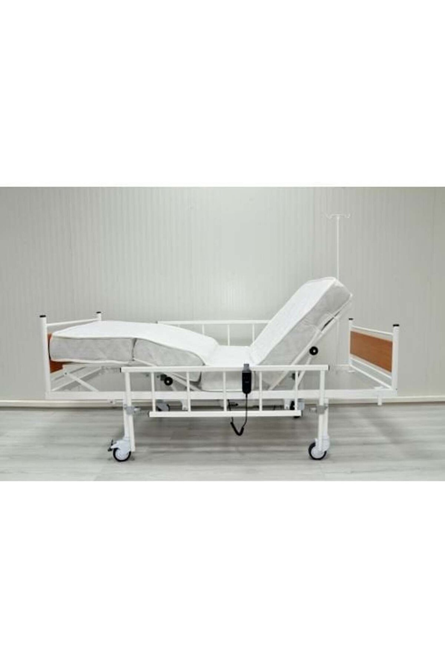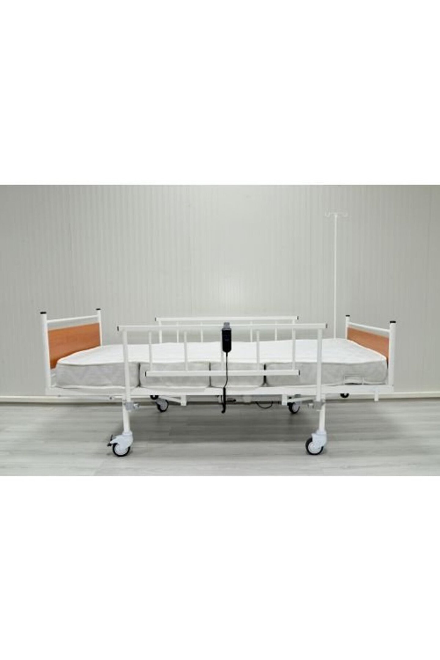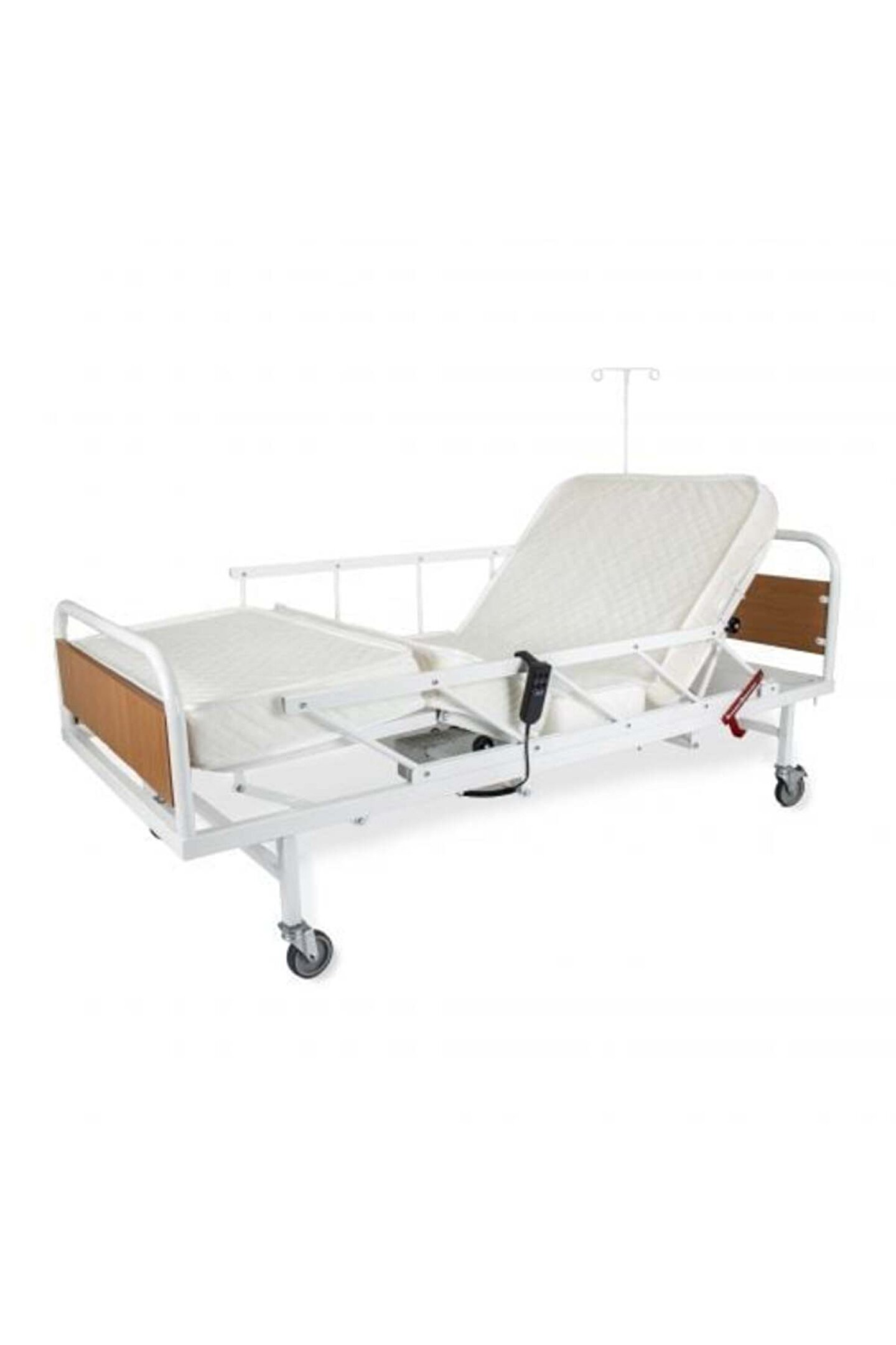 Motorlu Hasta yatağı 2 Motorlu Elektrikli Hasta Karyolası Ekonomik Ürün Tanıtımı Elektrikli hasta karyolası iki motorlu. Baş ve ayak ayarlı, hareketli korkuluklar. Sökülebilen ahşap başlıklar. Çapraz kilitlenebilir tekerlekler. Elektrostatik toz boyalı. Ebatlar:90x195 cm. Yükseklik:41 cm. Alman motor 4500newton luk 150kg kaldırma kapasitesi. 2 yıl ücretsiz servis ve 10 yıl yedek parça garantisi...Motorlu Hasta yatağı.