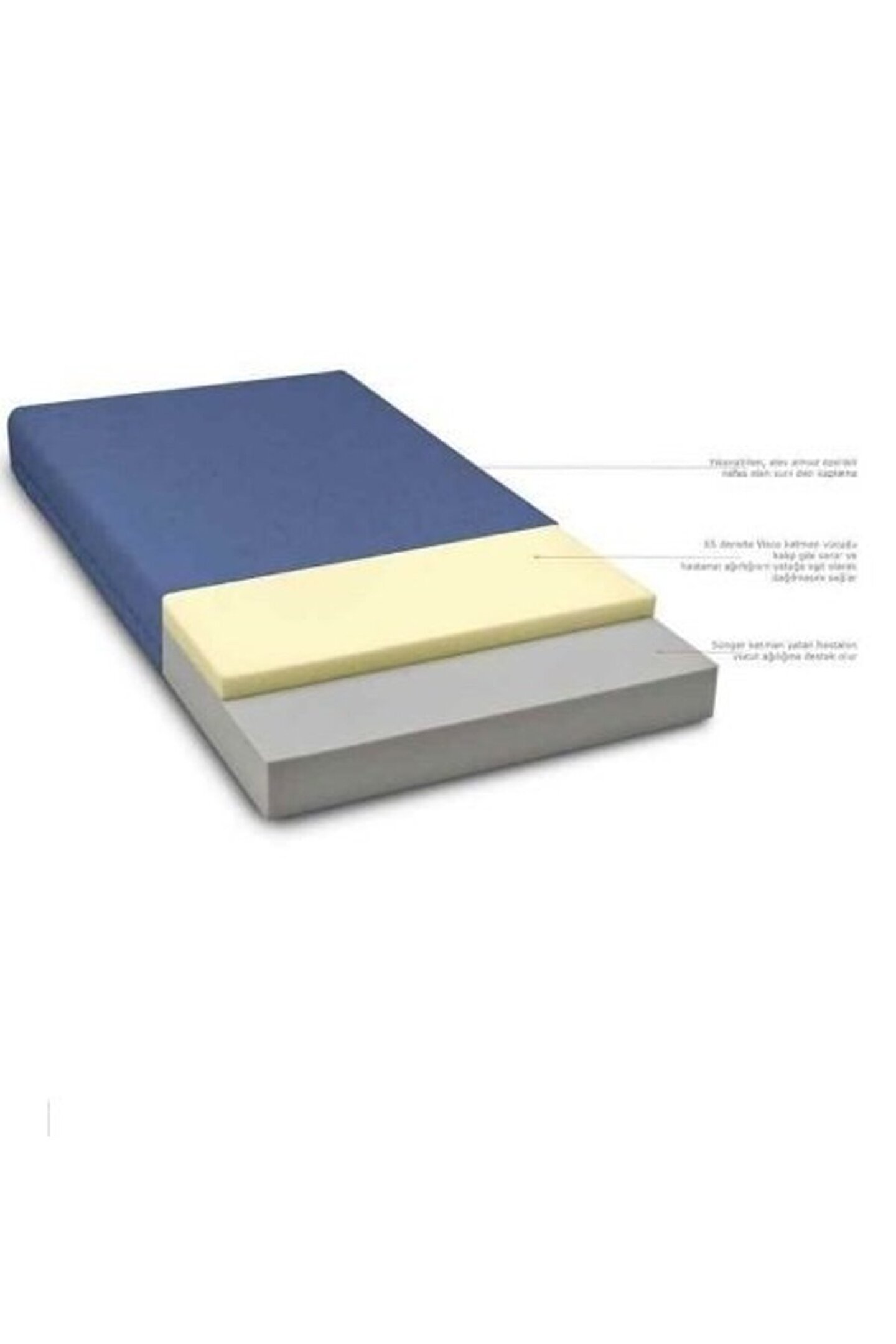 ORTOPEDİK VİSKO VUCUDA GÖRE SEKİL ALAN HASTA KARYOLASI YATAĞI Özellikleri Eni 90 cm, Boyu 190 cm, Yükseklik 15 cm. Sıvı geçirmez yüzey sayesinde yatağınız her zaman ilk günkü kadar temiz olacak. İkinci en büyük özelliği ise silinebilir veya yıkanabilir kılıfının olmasıdır. Yatarken vücudun şeklini alan yataktaki visko bölüm 7-9 cm kadar olmakla birlikte daha azı işlevsel olmamakta, fazlası ise sizin yatağa gömülmenize sebep olmaktadır. Tamamen ortopedik ve yaysızdır, su ile temas sonucu zarar görmez ve çökme, eğilme, büzülme gibi bir problem çıkartmaz. Bu ürünü kullanan insanlar mevcut omurga, eklem problemlerinde azalma olduğunu belirtmişlerdir. Ayrıca Visko Yataklar ileride oluşması muhtemel sorunları da önlerler. Ortam sıcaklığına göre duyarlı Visco yataklar sıcaklığa göre ekstra şekiller alırlar. Actigard özellikli kılıfları sayesinde mantar oluşumu gibi durumlara karşı anti-bakteriyel özelliklere sahiptir ve tamamen hijyeniktir. tıbbi ortopedik ürünlerdir: . Visco yatak tam ortopedik 3 katmanlı visco yataklar, vücudu her noktadan destekler, gördüğü boşlukları doldurarak kesintisiz uyku için ideal bir ortam yaratır. Tam ortopedik,sıvı geçirmez yüzeyli visco yatak.