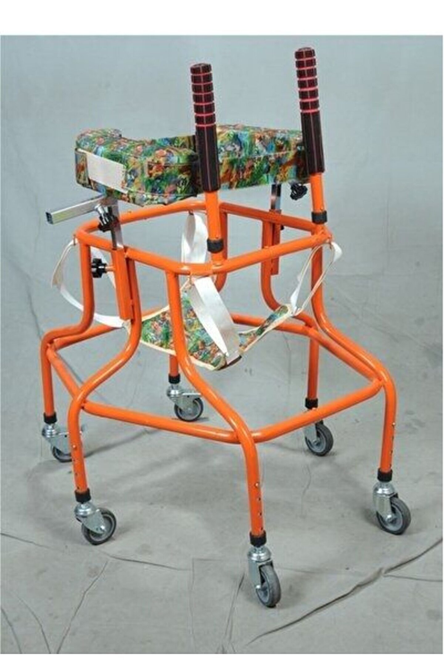 6 TEKERLEKLİ AYARLANABİLİR ELEKTROSTATİK TOZ BOYALI 6 tekerlekli yürüteç 02 , 15 yaş arası engelli çocuk hastaların yürüme kabiliyetlerini ve enerji depolarını boşaltmak için tasarlanmış üründür.bu ürünü kullanan çocukların kemik gelişimi sağlam ve ayakları üstüne düz ve sağlam basabilme direncini geliştirir. Cihaz sayesin çocuğun gelişen kemikleri direnç kazanır, gelişimi ve vucut yapısı direnç kazanır,cihazın içine koyulan çocuğun önce emniyeti alınır ayaklarının arasından geçirilen aparatla ayakları yere bastırılır kolları koltuk altından cihazın kol koyulan mekanizmanın üstüne otutturulur ve hasta kendi başına bırakılır. Hasta sağa sola yürüyerek dengeli olarak hareket eder cihazın hareket ederken hastayı devirmemesi için cihazın altı adet geniş örümcek ayağı gibi ayakları olmasından dolayı her hangi bir yere çarpmasından hastanın göreceği zararı engeller hasta sağa sola savrulmaz içinde rahat eder emniyetli olarak kullanır,cihaz tekerlek sistemli olup altı adet tekerleği mevcuttur hafif bir üründür .Yavrumuzun kasılması ve kendini atması varsa tavsiye edilmez Hastanın boyuna göre ayarlanır, yükseltilir ve alçaltılır, cihazın doksan derece hareket etme kabiliyeti mevcuttur, tekerlekli sandalye gibi Taşıma ürünü değildir.Yavrumuz kanepeye koltuğa tutunarak duvara yaslanarak ayakta duruyor ve adım atıyorsa ve velisi kendi parmaklarına yavrumuzun tutunarak ayakta tutup yürütebiliyorsa bu ürün önerilebilir.Tavsiye edilebilir. engelli örümcek yürüteci hastanın hareket etme kabiliyetini yürüme refleksi kazanmasını sağlar bu sayede hasta gelişimini en düşük seviyede felç rahatsızlığıyla geçirir fizik tedavi doktorları tarafından tercih edilen bir üründür ,hasta için her türlü kolaylık cihazda düşünülmüştür.Cihazın herhangi bir bakımı yoktur yerli imalat olarak üretilmektedir, aksesuarlarında herhangi bir zarar veya kaybolma olasığı olursa yedek malzeme sorunu yoktur. Üretim hatasına karşı karsı garantilidir .engelli çocuk yürüteci cocuk yürüteç engelli çocuk yürüteci cocuk yürüteç.