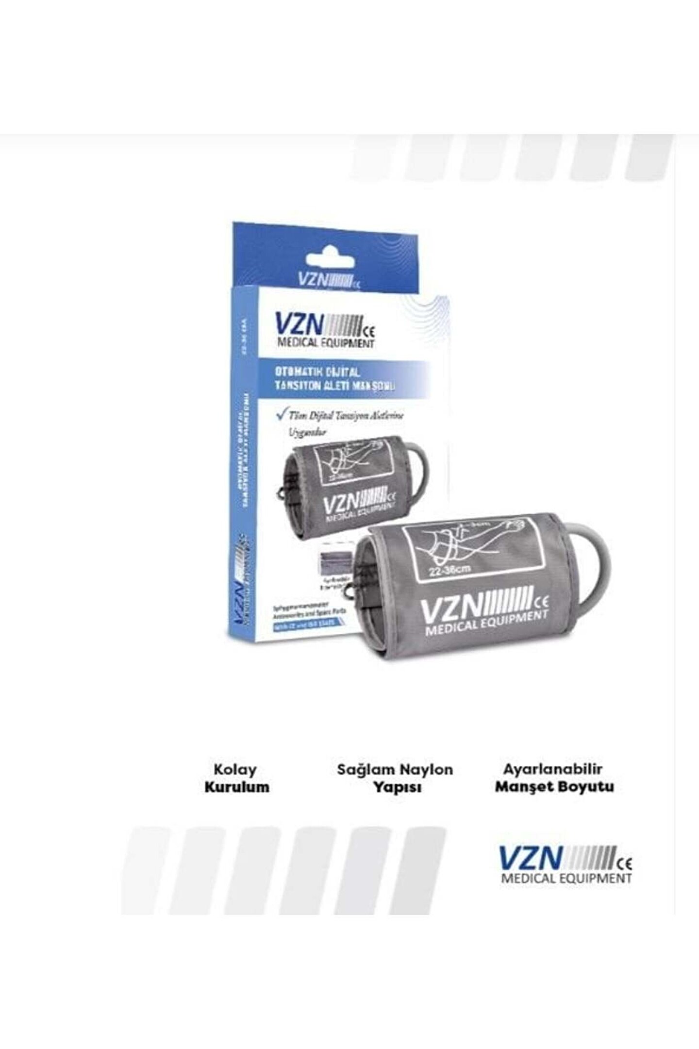 Medikaltec Otomatik Dijital Tansiyon Aleti Kol Manşonu VZN Otomatik Dijital Tansiyon Aleti Yedek Manşon, tüm dijital tansiyon aletlerine uyumlu bir üst kol manşonudur. ; Düz konnektöre sahip olan manşon, kolay kurulum imkanı sunar ve aşınmış veya hasar görmüş tansiyon aleti manşonlarının değiştirilmesini kolaylaştırır. ; Lateks içermeyen dayanıklı naylon malzemeden üretilmiştir ve standart kol ölçülerine uyacak şekilde tasarlanmıştır. ; Ayrıca, D halkası sayesinde kolunuza göre ayarlaması da oldukça pratiktir.;