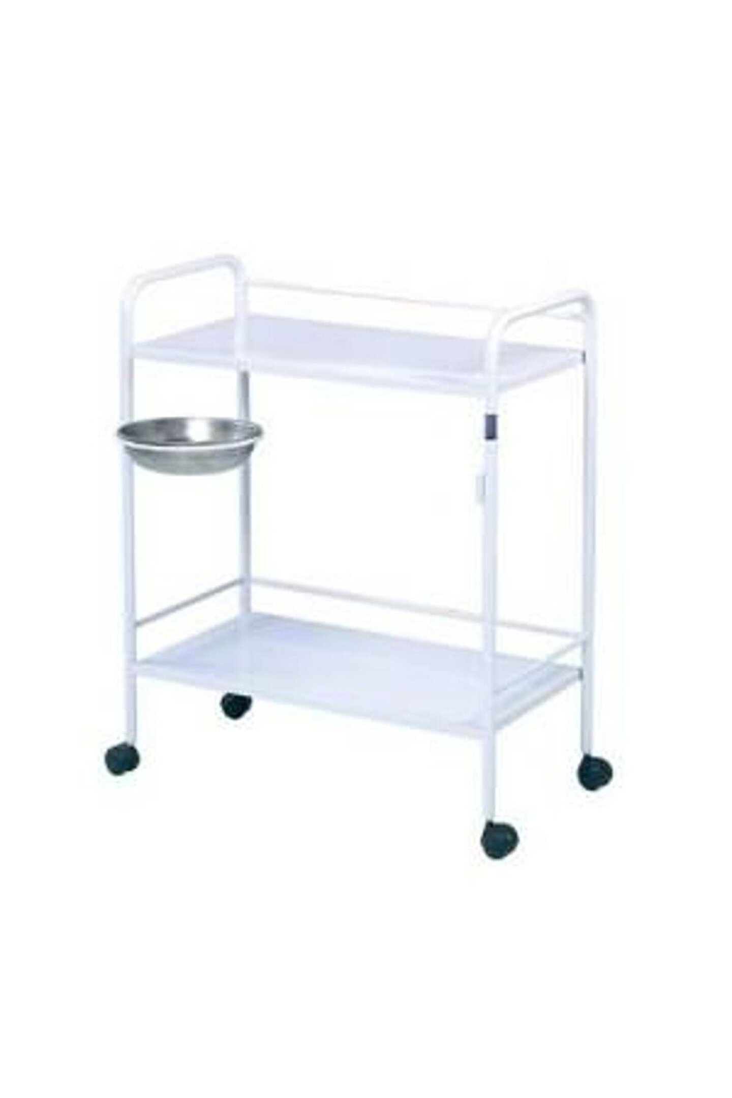 ÜRÜN ÖZELLİKLERİ - Gövde metal malzemeden imal edilmiştir. - Alt ve üst tabla metal malzemeden imal edilmiştir, üç tarafında koruma barları bulunmaktadır. - Bir adet tas mevcuttur. - 360 derece dönebilen dört adet tekerlek bulunmaktadır. - Tüm metal aksamı elektrostatik toz boya ile kaplanmıştır. Derinlik: 400 mm - Genişlik: 740 mm - Yükseklik: 790 mm.