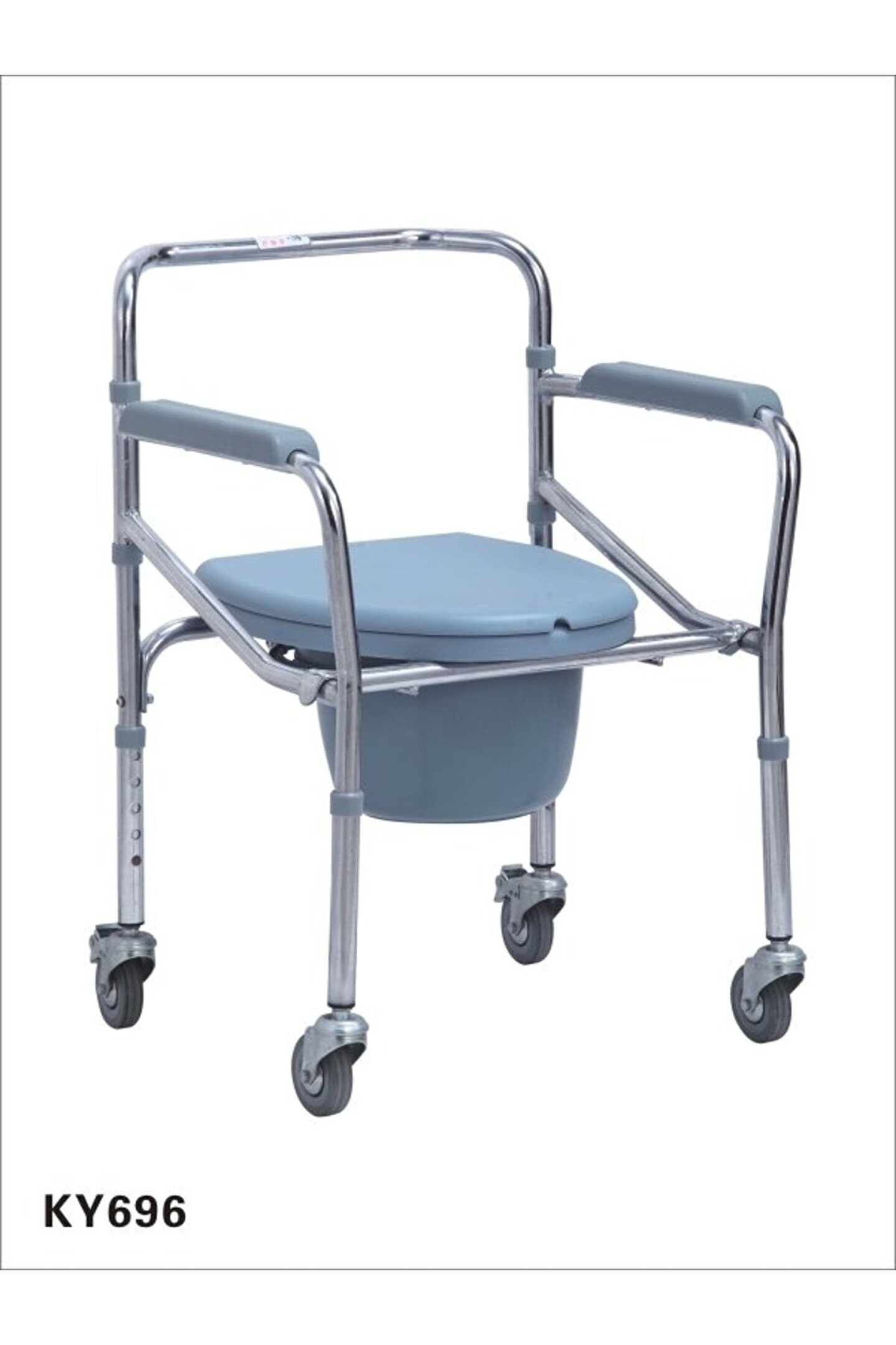 Avantajları: * Yaşlı , hasta , engelliler ve komodin ihtiyacı olan kullanıcılar için ekonomik kromlu çelik komodin tekerlekli sandalye * Paslanmaz , eskimeye dayanıklı krom çelik çerçeve * Kullanıcılara maksimum konfor sağlamak için insan feragatlerinin psikolojik eğriliğine dayalı ergonomiktasarım * Sabit gri plastik kolçaklar, ambalaj boyutundan ve yerden tasarruf sağlar * Dayanıklı, darbe emici, bakım gerektirmeyen 3''PVC jantlar