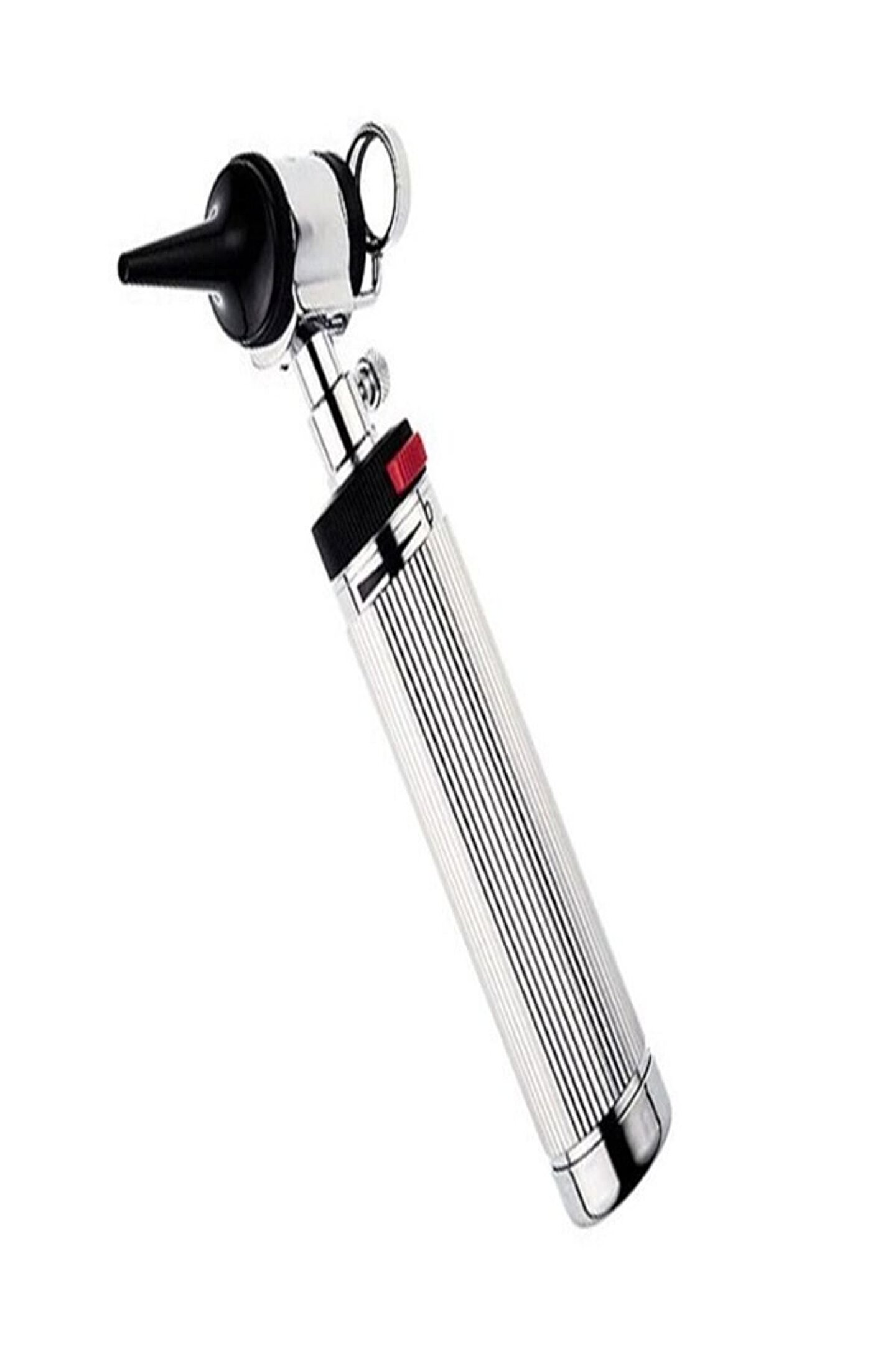 Riester UNI I Otoskop 2010 2.7 V Germany ; ; 25 mm çapında metal pil yuvası. Krom kaplama. Rehostalı açma kapama düğmesi ; 2.7v standart aydılatma Otoskop başlığı: krom kaplama, 1adet sabit lens, 1 adet 4x hareketli lens Pneumatik otoskopi için konnektör. 2, 3 ve 4 mm steril edilebilir spekülümler