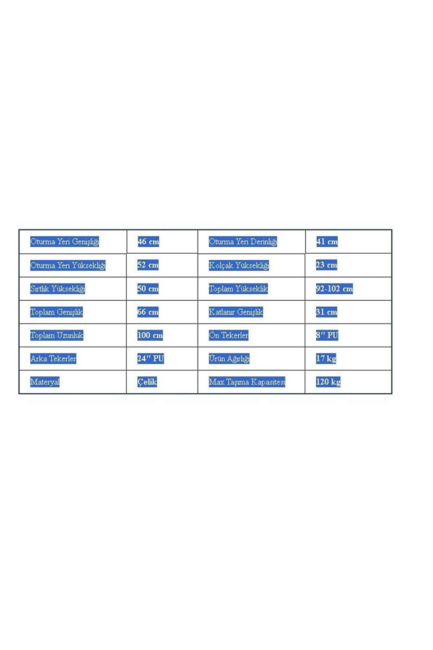 Medikaltec Rolid 100 Tekerlekli Sandalye Rolid 100 Tekerlekli Sandalye Türkiye’de Tek Avrupa standartlarına göre üretilmiş ve menşei belgelenmiş Tekerlekli Sandalye Modelidir. ; İç ve dış mekan kullanımına uygun olan Rolid 100 Tekerlekli Sandalye, çelik gövdeli ultra dayanıklı bir tekerlekli sandalyedir. ; Toplam ağırlığı 19 kg olan Rolid 100 Tekerlekli Sandalye, 120 kg’a kadar taşıma kapasitesine sahiptir.Rolid 100 Tekerlekli Sandalye tekerlekleri, 24? silikon lastikli arka tekerlek ve ayrıca iç mekan kullanımı için özel iz bırakmayan alaşıma sahip 8? PU dolgulu ön tekerlek ile dış mekanlarda konfor sağlar. ; Hareketli kolçaklara da sahip olan bu tekerlekli sandalye modeli, tekerlekli sandalye kullanıcılarının araba veya yatak gibi alanlara geçişini kolaylaştırmaktadır .;
