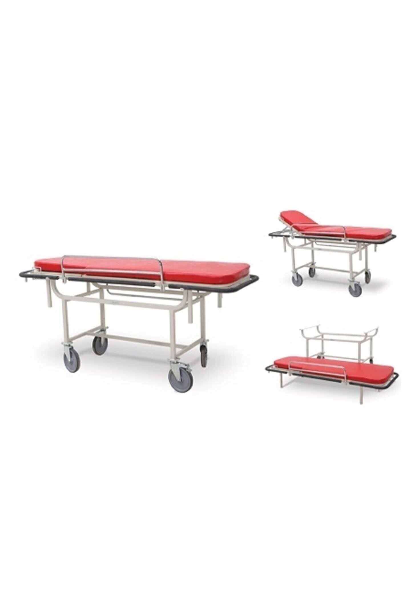 Uzunluk: 1900mm - Genişlik:600mm -Yükseklik: 720mm • Masanın sırt kısmı manuel kontrol edilebilmektedir. • Masanın üst platformu takılıp çıkartılabilir •Masanın yanlarında hareketli korkuluk bulunmaktadır.Ön ve arka bölümde çarpma tamponları mevcuttur. •360 Derece dönebilen 150 mm lik 4 adet tekerlek mevcuttur.2 tekerlek frenlidir. • Tüm metal aksamı elektrostatik toz boya ile boyalıdır.
