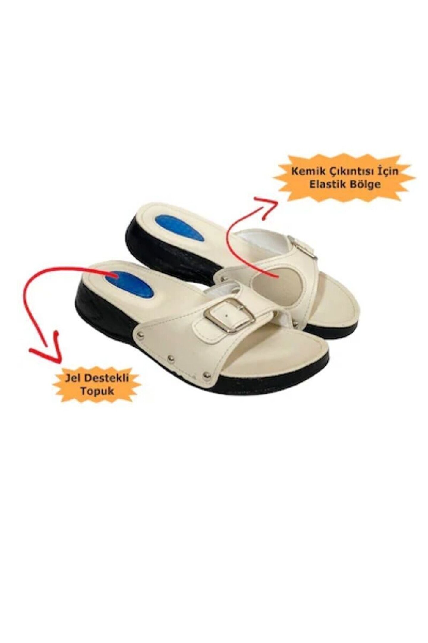 Topuk dikeni ve halluks valgus rahatsızlıkları için uygun bir modeldir. Silikon jelle topuk kısmı desteklenerek topuk dikeni olanlarda ayakların rahat etmesine yardımcı olmaktadır. Baş parmak yamukluğu ve bunyonların vermiş olduğu şiddetli acı, parmak bölgesinde kullanılan elastik malzemesi ile hafifletilmiştir. Günlük kullanıma uygundur. Ortopedik özelliklerinde destek noktalı tabanlık ayak anatomisine uygun destek noktaları ile ayağı yormayan ve sağlıklı yürüme imkanı sunan kaliteli terlik modelidir. Baş parmak yamukluğu ve bunyonların vermiş olduğu şiddetli acı, parmak bölgesinde kullanılan elastik malzemesi ile hafifletilmiştir. Ayağınızda halluks valgus çıkıntısı varsa modelimiz tam size göredir.