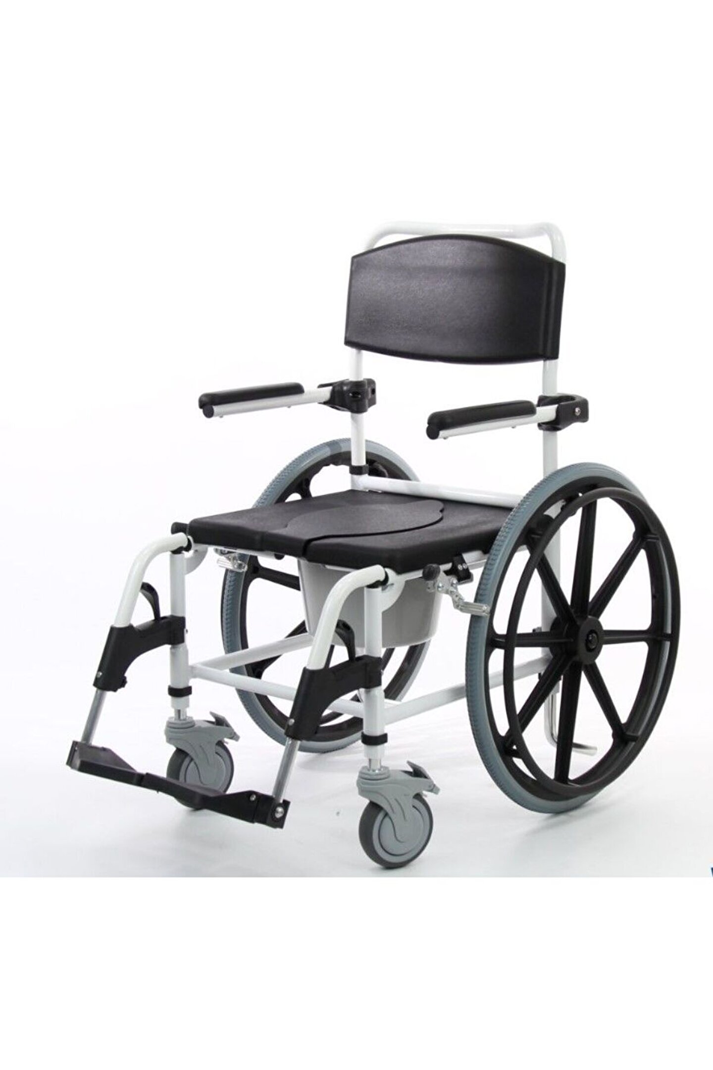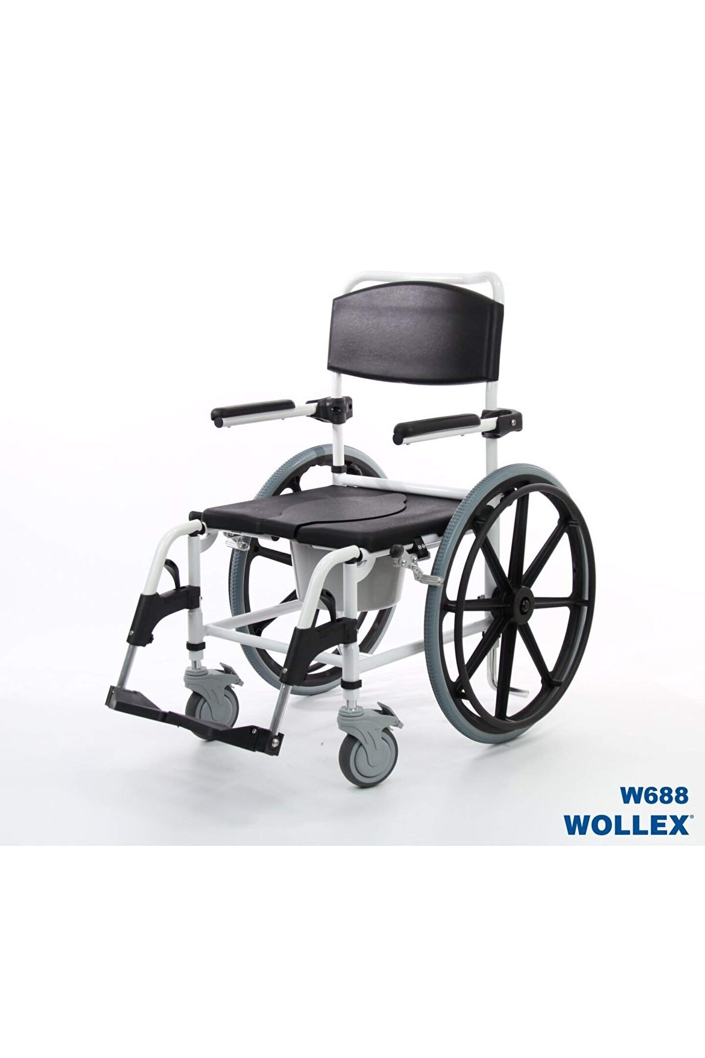 Medikaltec Tuvalete Yanaşan Sandalye wollex W688 Klozetli Tekerlekli Sandalye wollex W688 Klozetli Tekerlekli Sandalye wollex W688 Klozetli Tekerlekli Sandalye iç mekânlar ve ıslak alan da kullanıma uygun, Gövde yapısı alüminyumdan üretilmiş, paslanma yapmaz. ; Gövde rengi mekanik beyaz, Oturma ve sırt şilte rengi siyah, Oturma yeri PU (poliüretan) dan imal edilmiştir, ıslak alanda kullanıma uygundur bakteri üretmez. ; Sabit kol dayama yerleri ve üstü ıslak alana da kullanıma uygun yumuşak sünger kaplı, Hareketli ayak koyma yeri,;