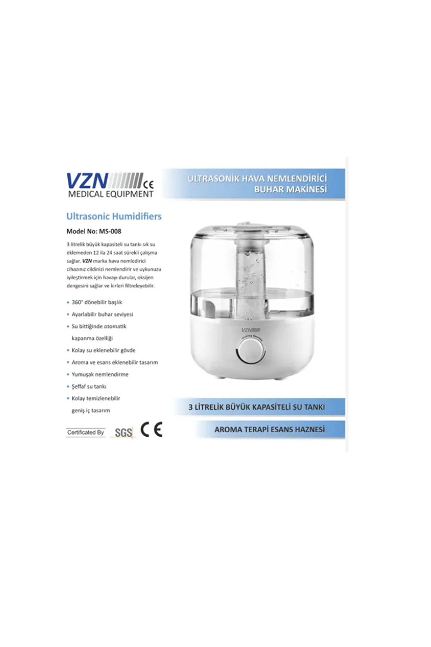 3 litrelik büyük kapasiteli su tankı sık su eklemeden 12 ila 24 saat sürekli çalışma sağlar. VZN marka hava nemledirici cihazınız cildinizi nemlendirir ve uykunuzu iyileştirmek için havayı durular, oksijen dengesini sağlar ve kirleri filtreleyebilir.