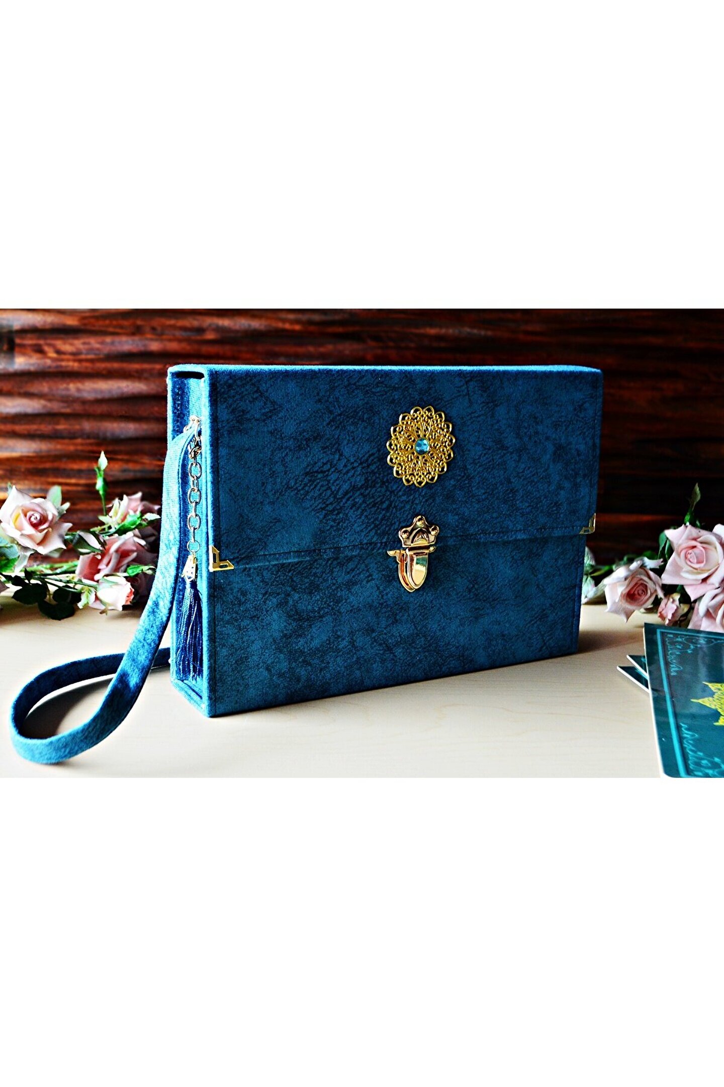 Süslemeli Hediyelik Kadife Kaplı Kutulu Kuranı Kerim | Ahşap Kutu, Kadife Kuran, Şal ve İnci Tesbih