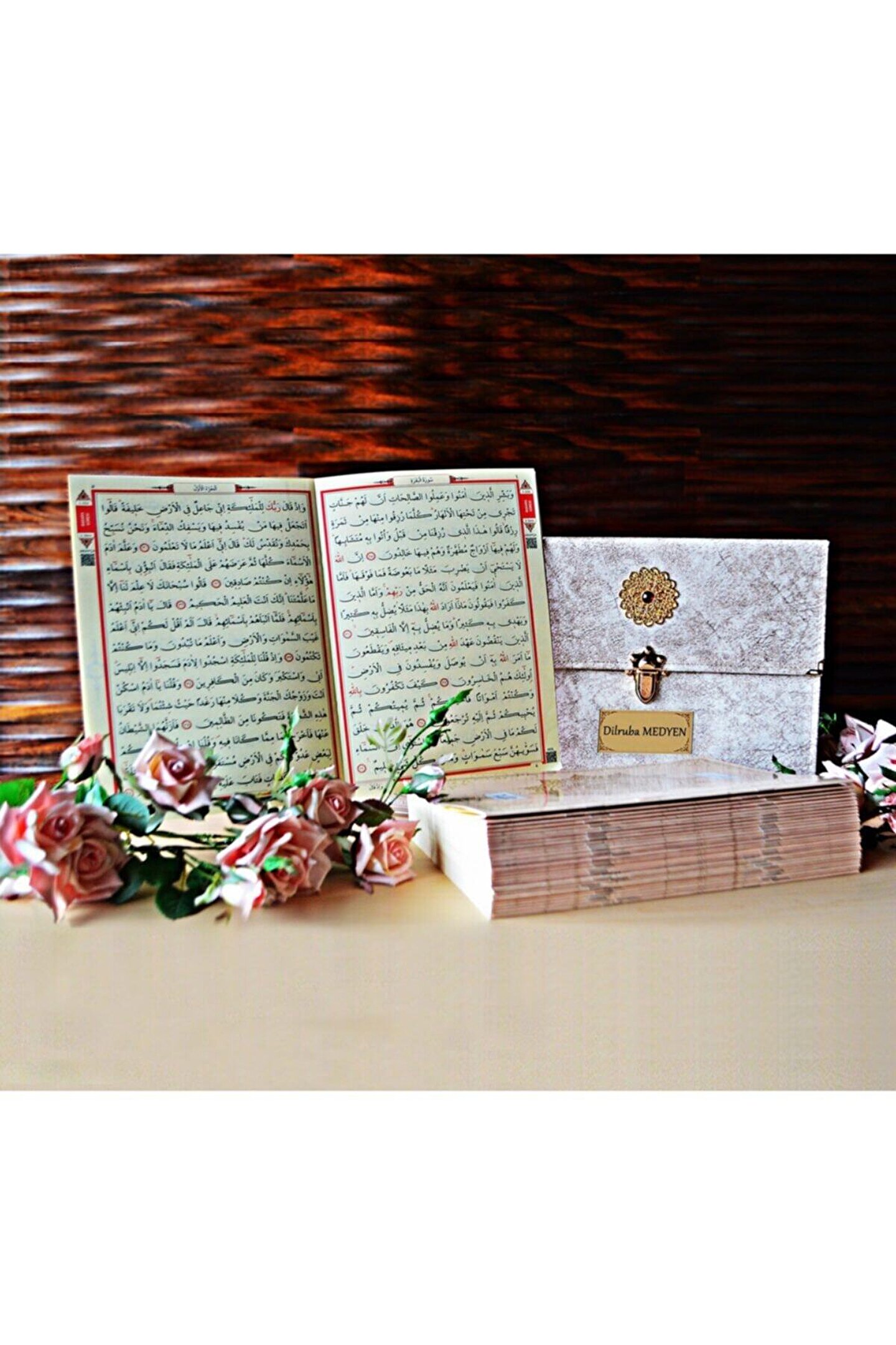 Ürünümüzün Genel Özellikleri · Mübarek günlerde, mukabelelerde, Kur’ân Kurslarında, mevlidlerde taziye evlerinde topluca ve kısa sürede hatim yapabileceğiniz pratik ve kullanışlı bir settir.; ; · Ürünümüz Çantalıdır.; ; · Çantası Lüks Nubuk kumaş ciltlidir.; ; Metal madalyonlu, Paslanmaz Metal Aksam ve askılıdır.; ; · Kur'ân-ı Kerîmimizin otuz cüz'ü ayrı ayrı hazırlanmıştır.; ; Cüzlerimizin Ürün Özellikleri · Diyanet İşleri Başkanlığı Mushafları İnceleme ve Kıraat Kurulundan Onaylı ve Mühürlü · Bilgisayar hatlı olup kolay okunabilen iri yazılı font ile yazılmıştır.; ; · Arapça Metin · Lüks Karton Kapak · 1.Hamur Şamua Kağıt · Rahle Boy (20x28 ebat) · Cüzlerimizin her sayfasında buluna QR kodu, akıllı telefon ve tabletlerinizden okutarak ilgili sayfanın Arapça okunuşunu ve Türkçe Mealini sesli olarak dinleyebilirsiniz.;