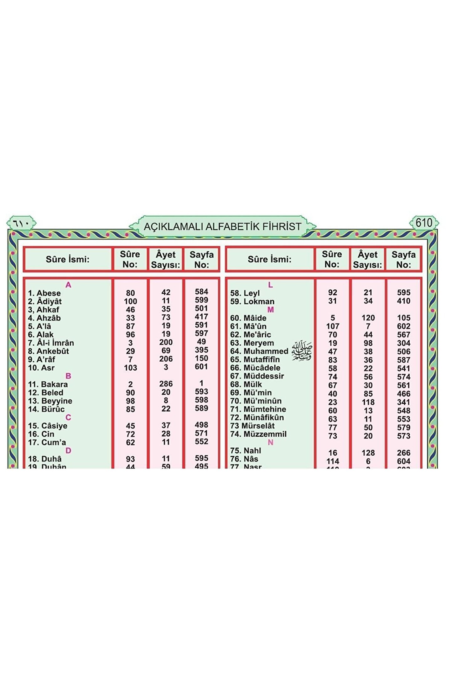 Kuranı Kerim Türkçe Satırarası Kelime Meali Rahle Boy 20 x 28 cm Mealli Kuran Kuran-ı Kerim'imizin her sayfasında buluna QR kodu, akıllı telefon ve tabletlerinizden okutarak Kuran-ı Kerim'imizin ilgili sayfasını Arapça okunuş ve Türkçe Mealini sesli olarak dinleyebilirsiniz Diyanet İşleri Başkanlığı Mushafları İnceleme ve Kıraat Kurulundan Onaylı ve Mühürlü Sayfada, Arapça Kur'ân metni bulunur, Arapça kelimelerin altında Türkçe mânâsı, yan tarafta ise cümle bütünlüğü içindeki toplu meali verilmiştir.; ; Kelime kelime farklı renklerde renklendirilmiş Arapça metin ve altında renkli Türkçe meali yazmaktadır.; ; Dünyada En Kolay Okunan Bilgisayar Hattı ile yazılmıştır.; ; Elmalılı Muhammed Hamdi Yazır Mealli (Türkçe Anlamı) Bez Kaplama Lüks Karton Kapak * 640 Sayfa *1.Hamur Şamua Kağıt;